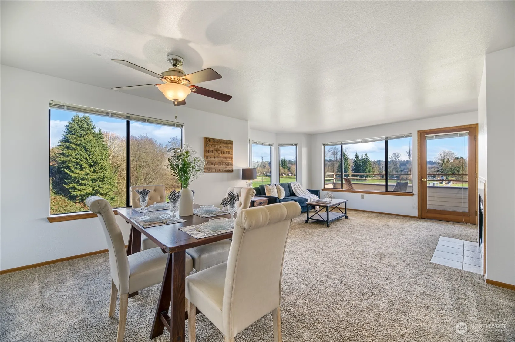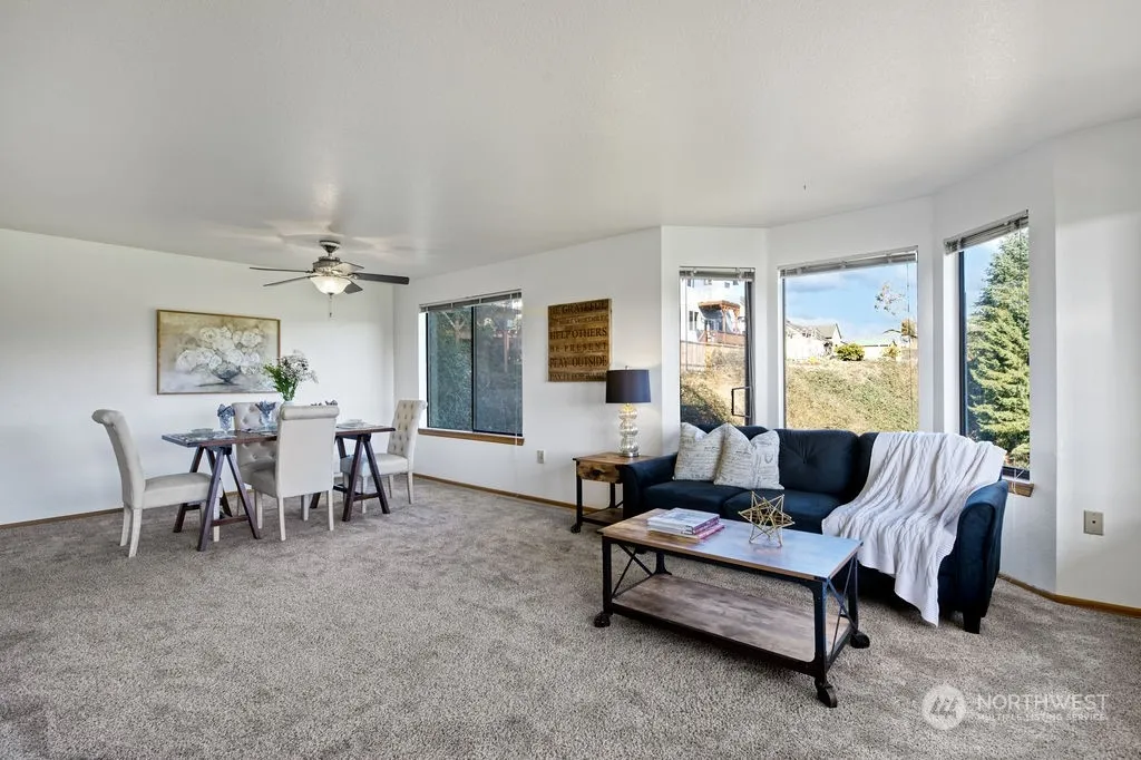 Welcome to Pilchuck Gardens. This ground level end unit condo captures the beautiful views of the Cascade mountains and Pilchuck Park from all of your living spaces. The 1,186 sq.ft. includes a sizable living room with wood/electric fireplace & bay window, kitchen with cozy breakfast nook & dining area w/ ceiling fan, a private lanai, 2 bedrooms, 1.75 bathrooms and in-unit laundry! The primary bedroom includes a large walk-in closet and a full bathroom. Outside the unit offers private parking – one covered spot is included with the unit as well as a storage room. Enjoy quietude in this 55+ complex while being minutes from Historic downtown Snohomish.