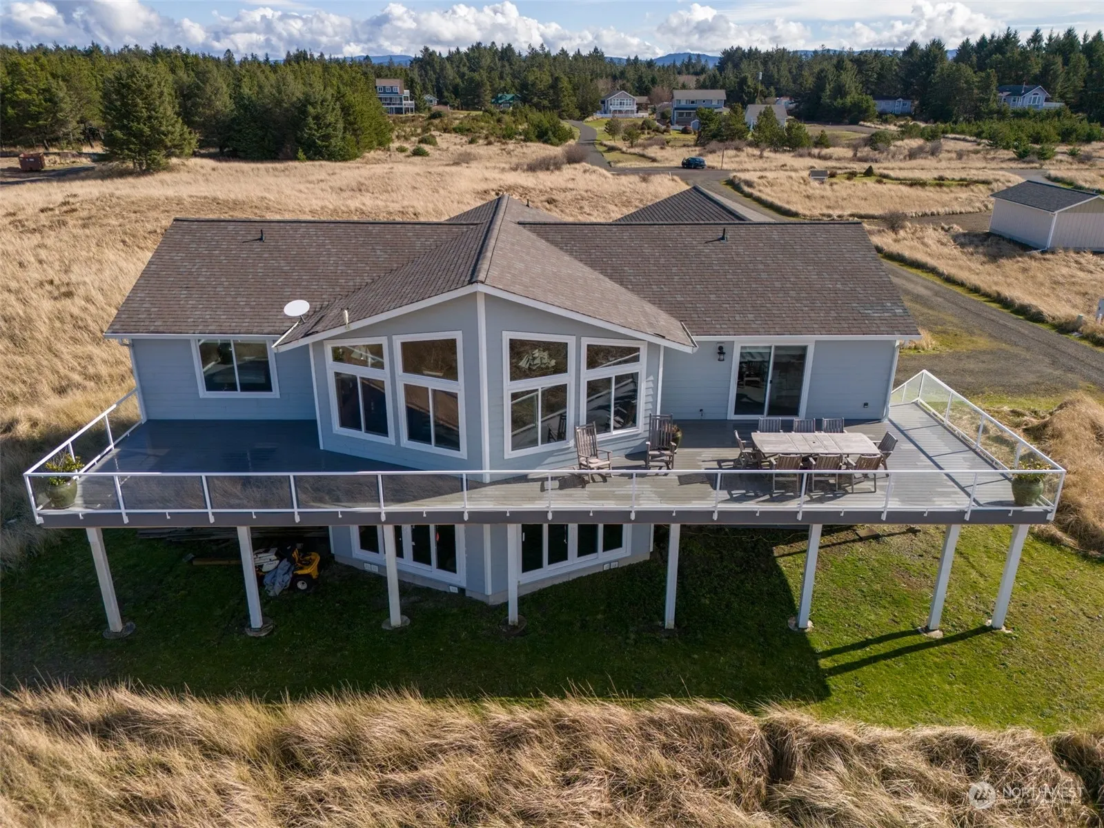 Have you ever dreamed of living by the ocean? This is your opportunity to live on a full acre of land, steps to the beach, in a lightly lived-in 2019 built, custom home. Upon entry, the wall of west facing windows provide panoramic views of the ocean. The open floor plan and wraparound deck make a perfect environment for entertaining guests or relaxing in solitude. 3 bedrooms and 2 full bathrooms on the main floor and 2 bedrooms and 2 full bathrooms on the unfinished lower level, with plumbing and electric in place. 6 bedroom septic. Turnaround driveway with plenty of room for parking. This is a value packed offering to the market, including the ability for short term rentals!