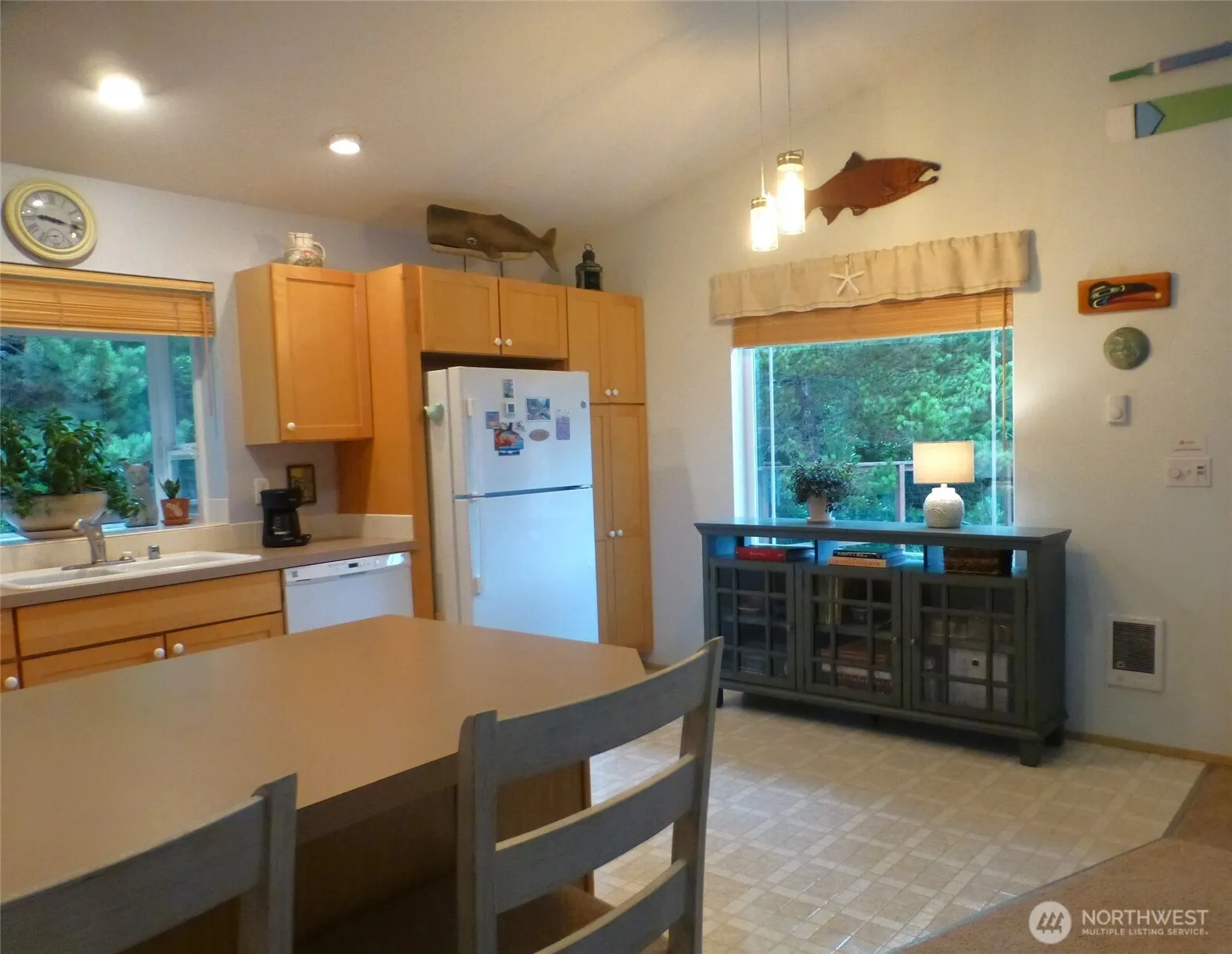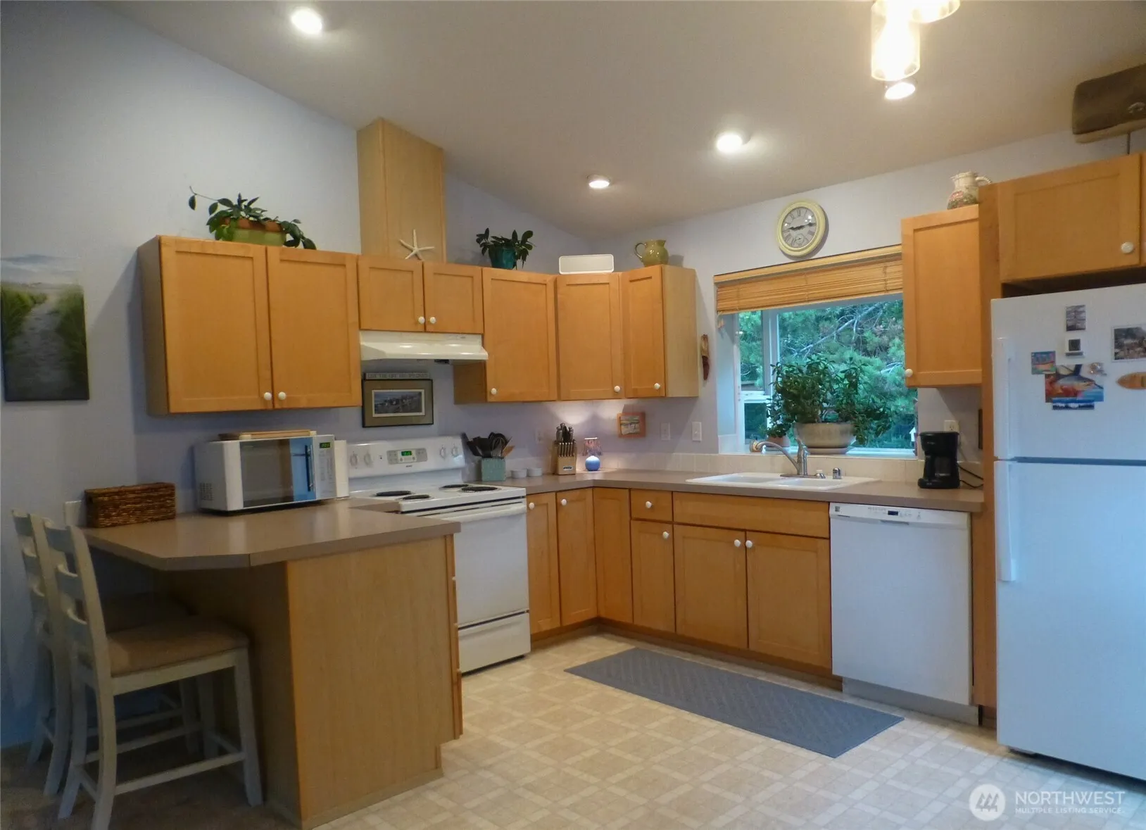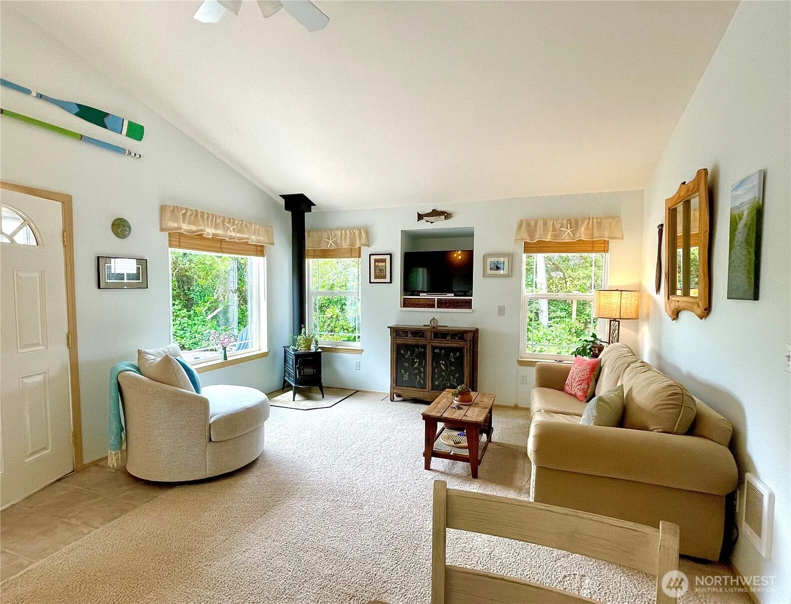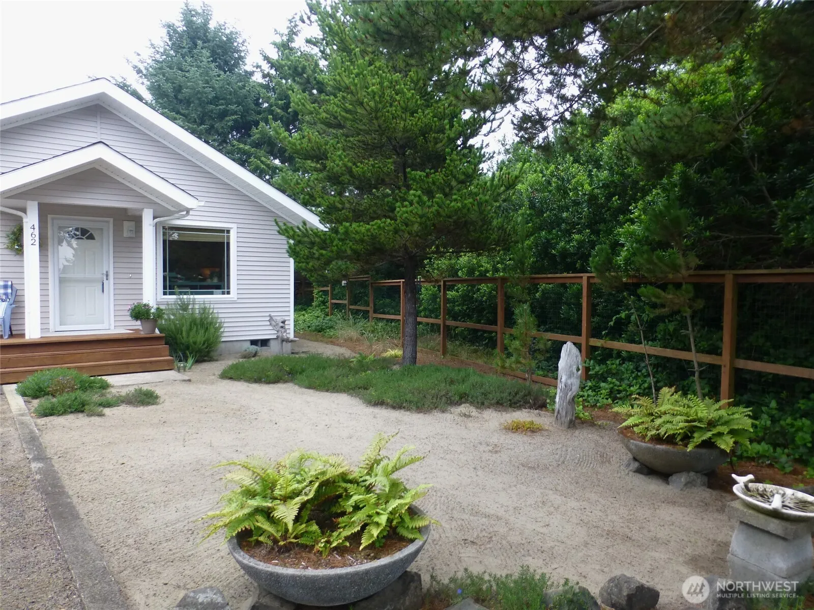 UPDATED PRICE! 2 BR cottage located in a private setting & within walking distance of local beach access and Cabana Pool. Open floor plan with high ceilings, large windows & a wood stove. Large kitchen boasts figured maple cabinets & plenty of counter space. The property also features a 24’x 24’ (576 sq.ft) FINISHED detached building with wall heaters, recessed lighting and a variety of entrances. This separate space can be used for an art studio, outdoor entertainment center, workshop or a garage to store your toys. Garden shed, carport & a finished storage building, along w/RV parking & 30/50-amp service on site. Freshly painted ext. trim on house & shop, w/new storm doors on the home. Old Republic 12-mo Standard Home Warranty included.