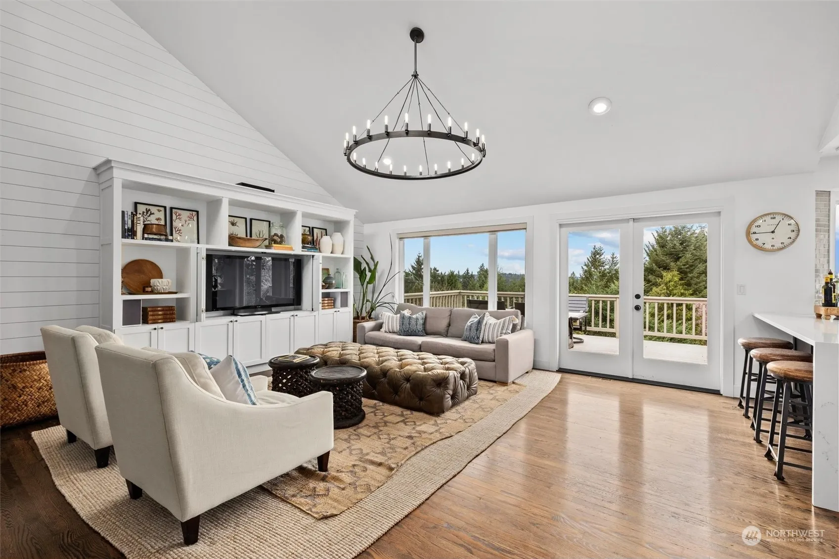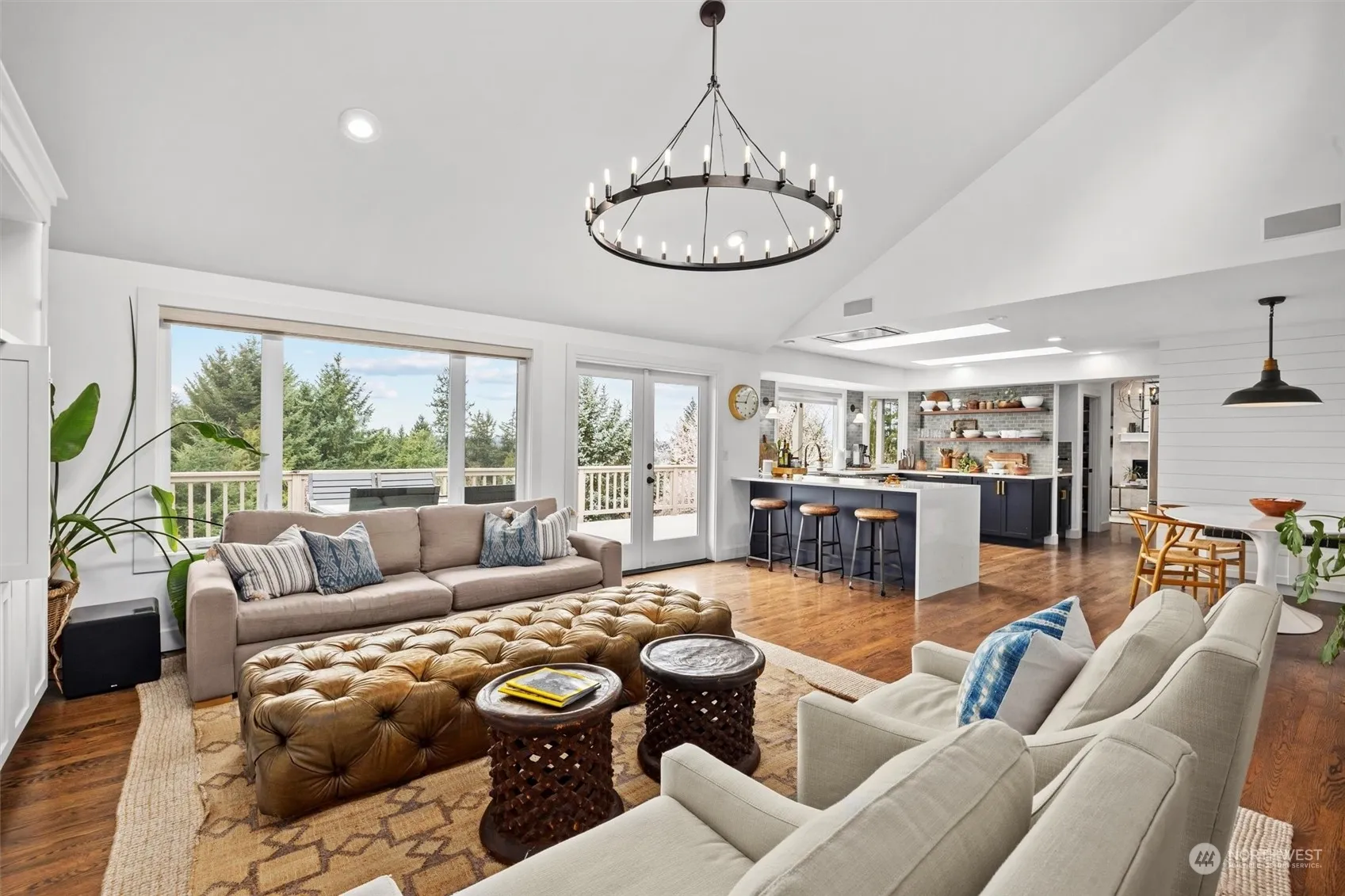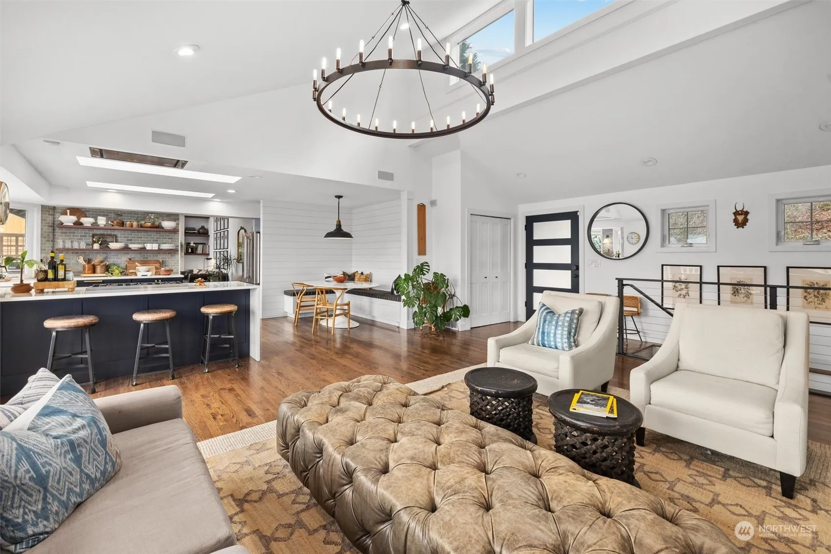Welcome to Woodinville! Tastefully remodeled home in excellent top-of-the-hill location with Olympic views. Light & bright living space with tons of skylights & windows. Stylish kitchen with Wolf 6-burner gas stove, eating bar, & dining area. Study off kitchen with cozy gas fireplace. Primary suite has luxurious bathroom with spacious shower, soaking tub, heated floors, & walk-in closet. All of this & two additional rooms conveniently located on main floor. Downstairs has large bonus room, 4th bedroom, home office, & spacious laundry. Three-car garage & heated storage room or workshop. Deck with two covered areas overlooks the large, landscaped yard with gardening space. Northshore Schools! Quiet street minutes to downtown & wine country!