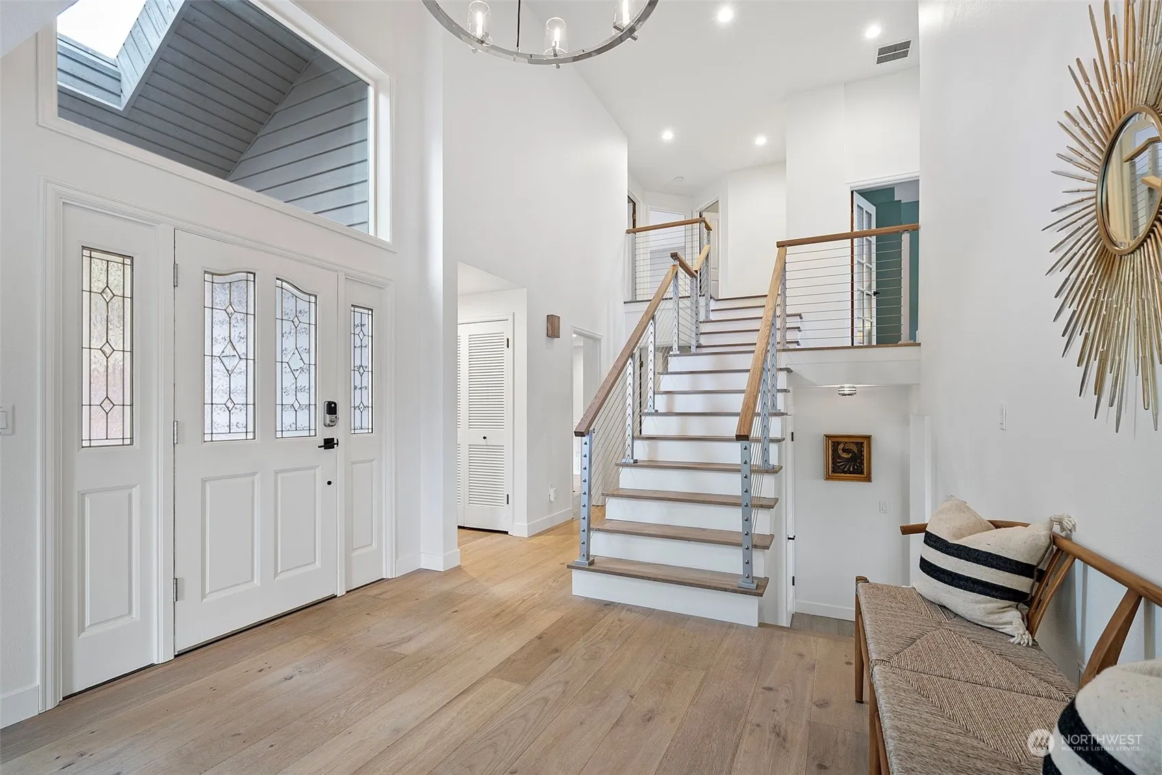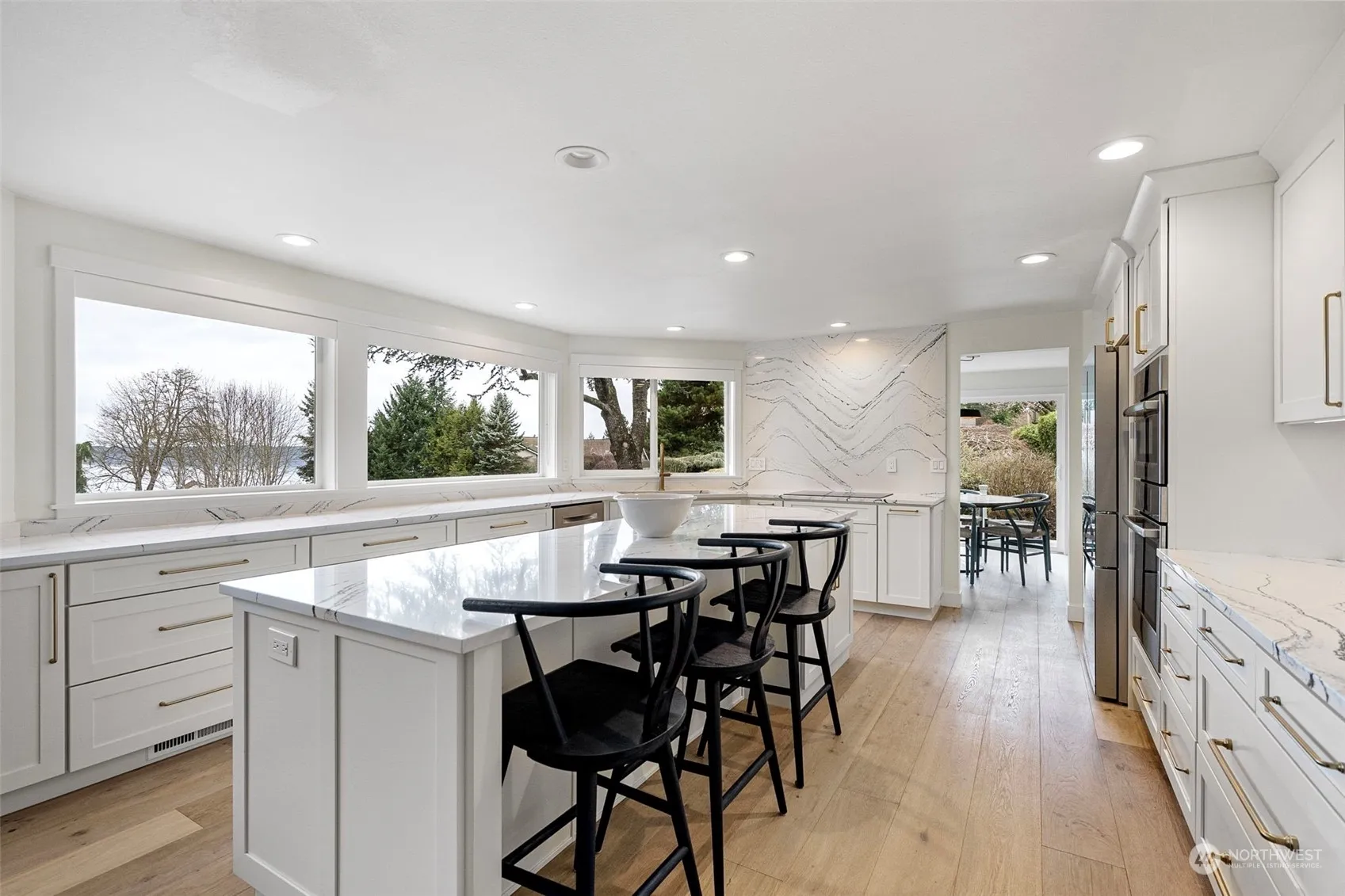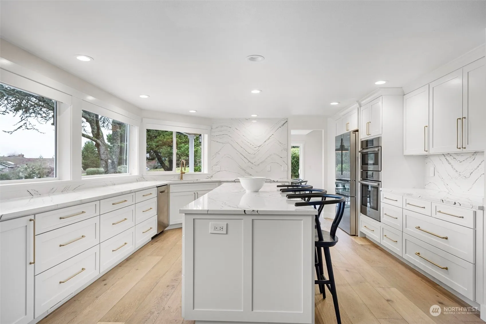 Great Gig Harbor location in desirable Kopachuck Ridge neighborhood. Beautiful views of Horsehead Bay with Olympic Mountains backdrop! Welcome guests through grand entry to living room with gas fireplace. Gorgeous remodeled kitchen with DeWils cabinets, Cambria countertops, & high-end Bosch appliances! Dining room, office, & second living area also updated. Four bedrooms upstairs including large primary suite with 5-piece bath & more terrific views! Two-car garage, plus amazing 3-car, 1,008 sq-ft shop. Large Trex deck with new awning & hot tub. Beautifully landscaped yard with extensive outdoor lighting & private fire pit. Neighborhood trails to sought-after Voyager Elementary & Kopachuck Middle School. Watch orcas from nearby state park!