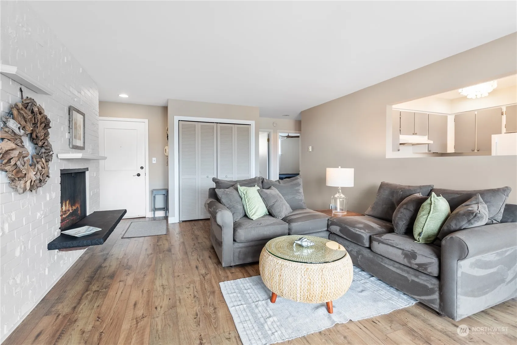 Welcome home to this open concept floorplan with large west facing new windows. Step outside the new sliding door to the spacious balcony and enjoy views of Puget Sound sunsets and Olympic mountains. There’s a traditional fireplace for warm winter ambiance. 2 large bedrooms, large closets and driftwood designed ceiling fans make this home comfortable. The community is pet friendly, features a common area reading room and additional storage on lower level. Located 3 blocks to downtown Edmonds restaurants, coffee shops and Saturday Farmers market, Marina, Beaches, Ferry and more. Recent upgrades include windows, luxury flooring, trim, kitchen tile, bath toilet and sink, hot water tank, light fixtures, refrigerator, paint and electric panel.