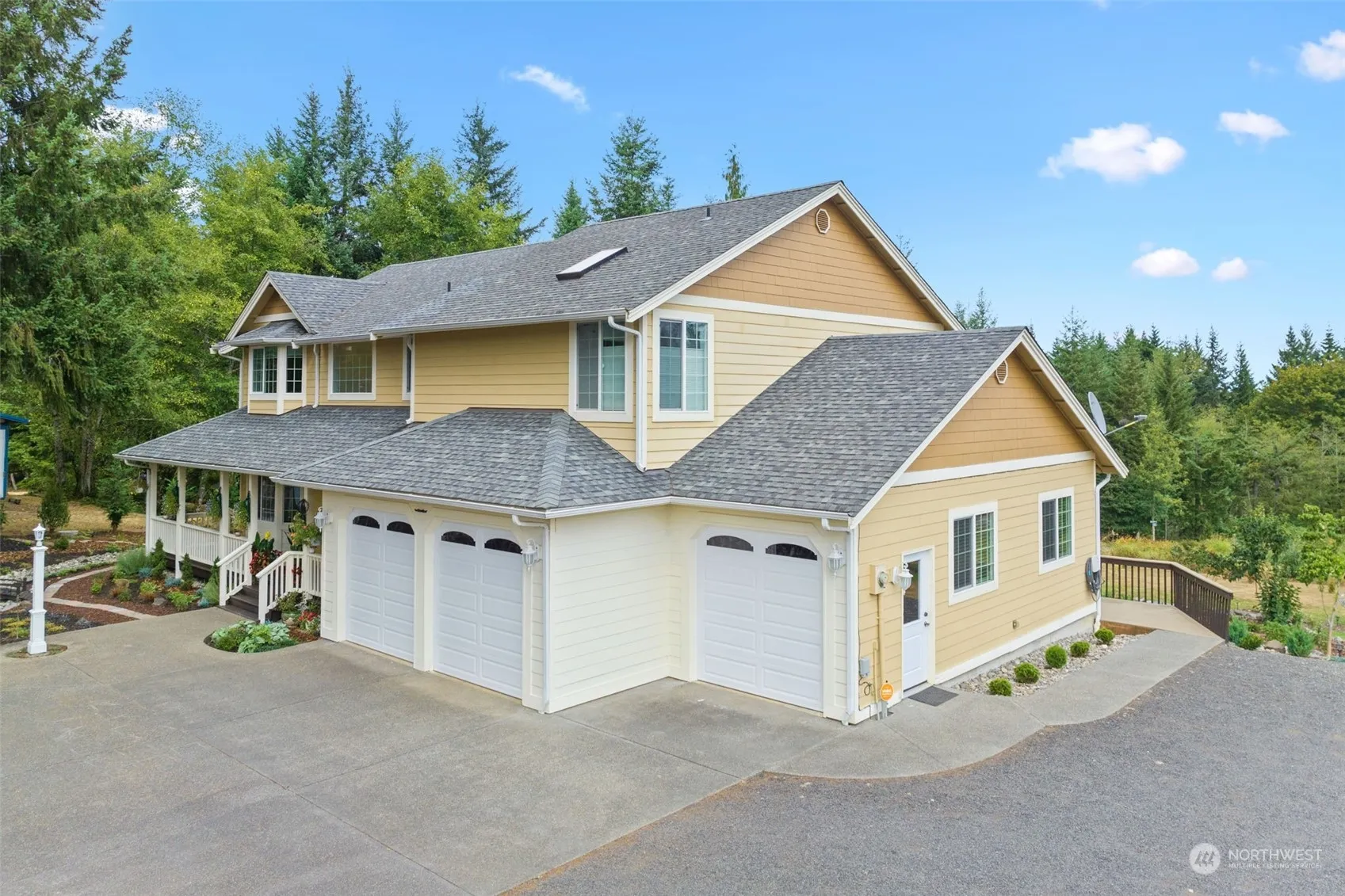 “A Home for Making Memories”. This spacious and private home in Adna is move-in Ready! Attention to detail abounds! Enjoy the sunrise view from your gourmet kitchen with high-end cabinets and slab granite counters. Seamlessly transition into the light and bright family room w/french doors to a large composite deck overlooking 2 acres of lush gardens and open space. Gorgeous 7” Appalachian solid oak floors throughout the main level complimented by newer carpets upstairs and finished off with beautiful travertine tile in the master bath. The light exposure makes this property a gardener’s dream. Enjoy the addition of a quaint garden/storage shed and third car garage bay with hot/cold water. Welcome Home!