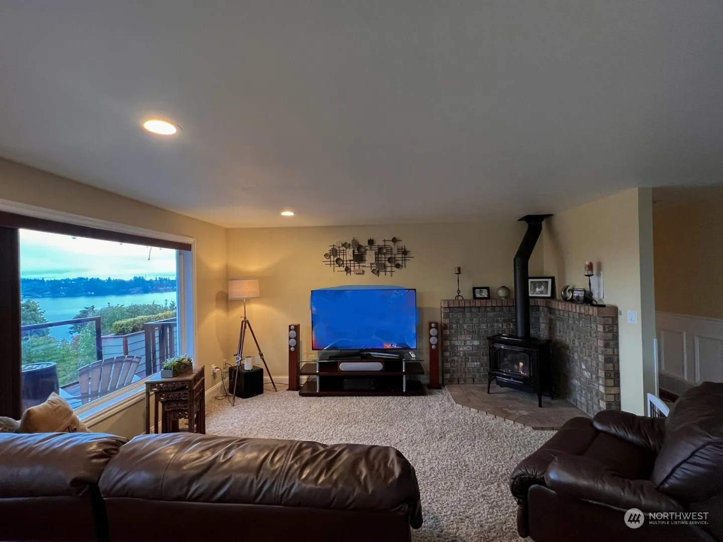 Stunning 5br 3.5bth multi-generational home on dead end. Perched high above Lake with spectacular 180-deg lake and mountain views, sun rise sunset. Rambler style main level w/Daylight features full MIL apartment (pvt kitch, br, bth, laundry and lake views), pvt entrance & parking (ADU). RV /Boat 18’x40′ RV Carport (full RV hook Up inc sewer), 6000sqft paved driveway. year around outdoor living, 15’x15′ gazebo, 1400sqft Trex deck, cv’d 12×20′ outdoor BBQ/Kitch, detached shop/shed. Home has recently undergone many upgrades (too many to list). Fenced yard with off street driveway for kids/pets to safely play. Stroll to two lake access parks. Kid & adults will also enjoy TV/Movies/Sports in the1000sqft Theater/Rec room with 119″ Screen.