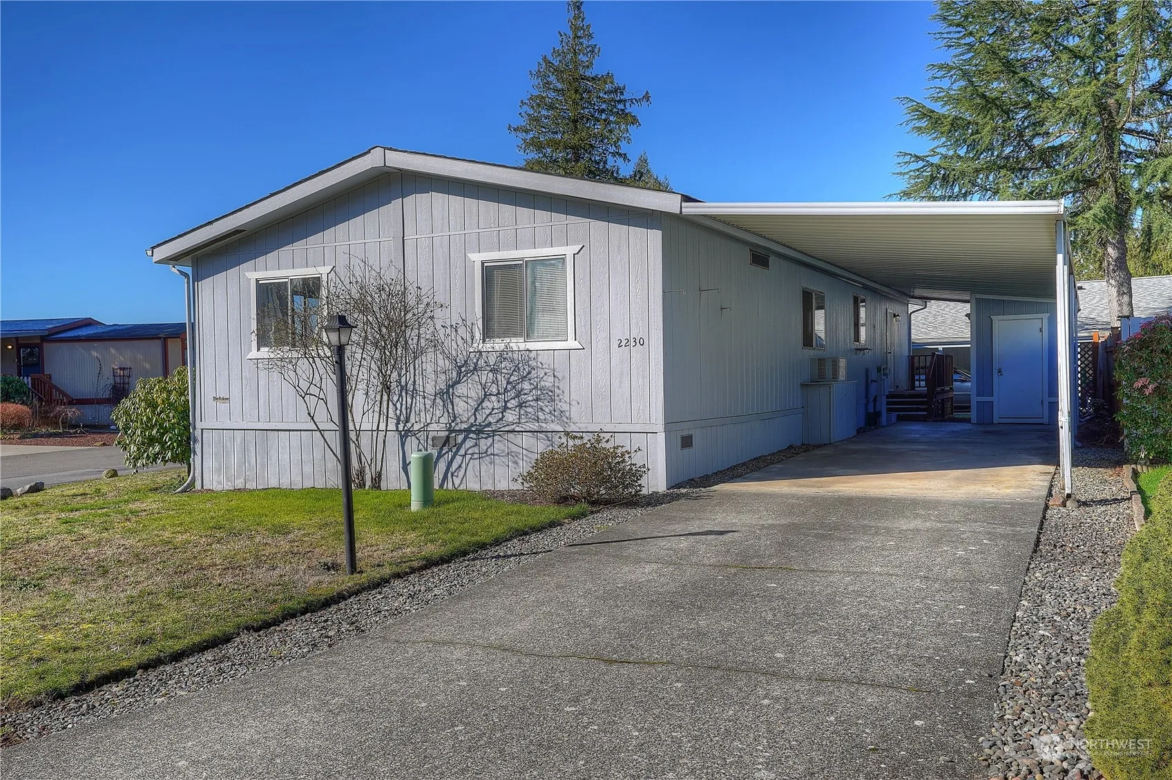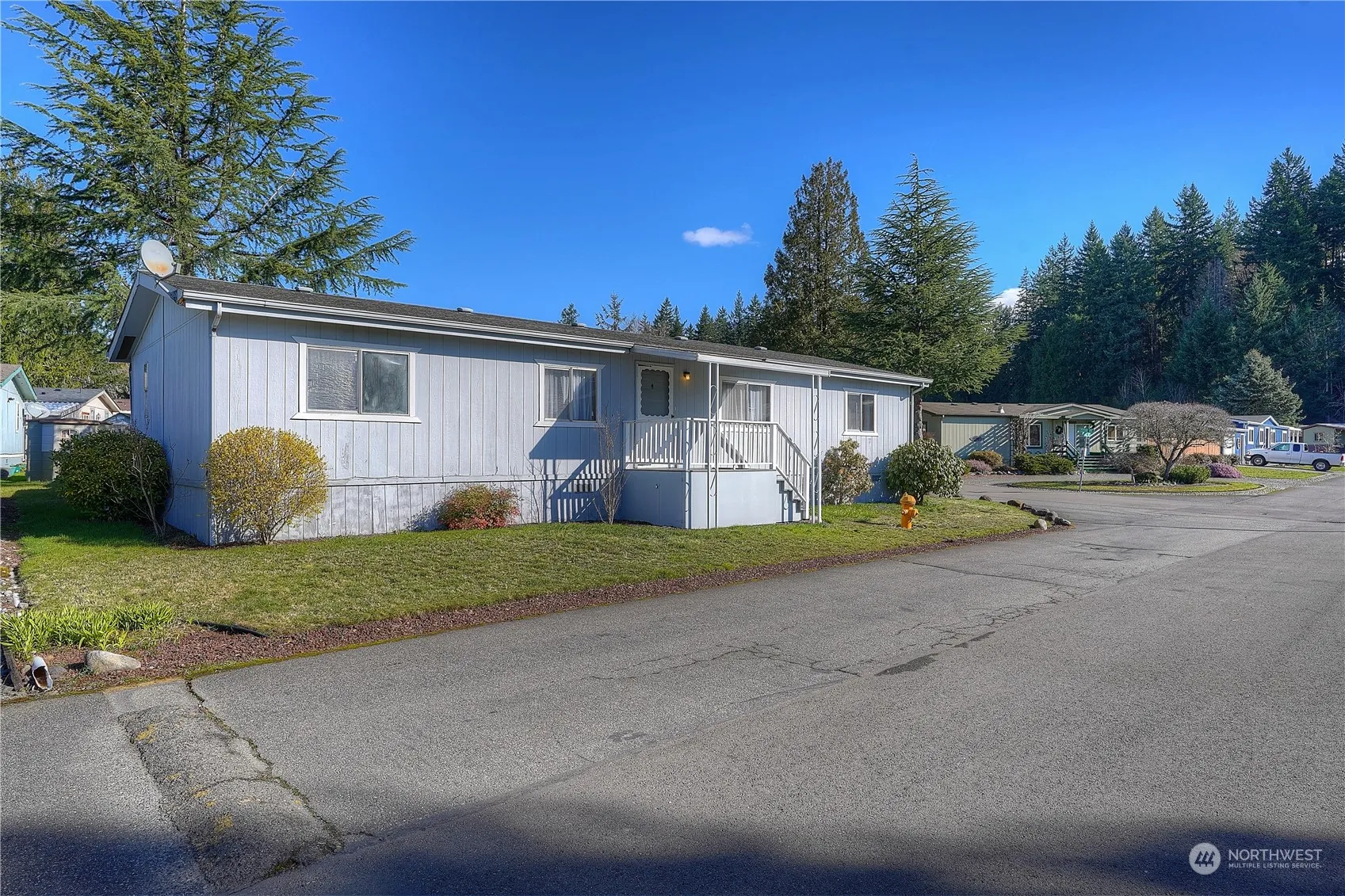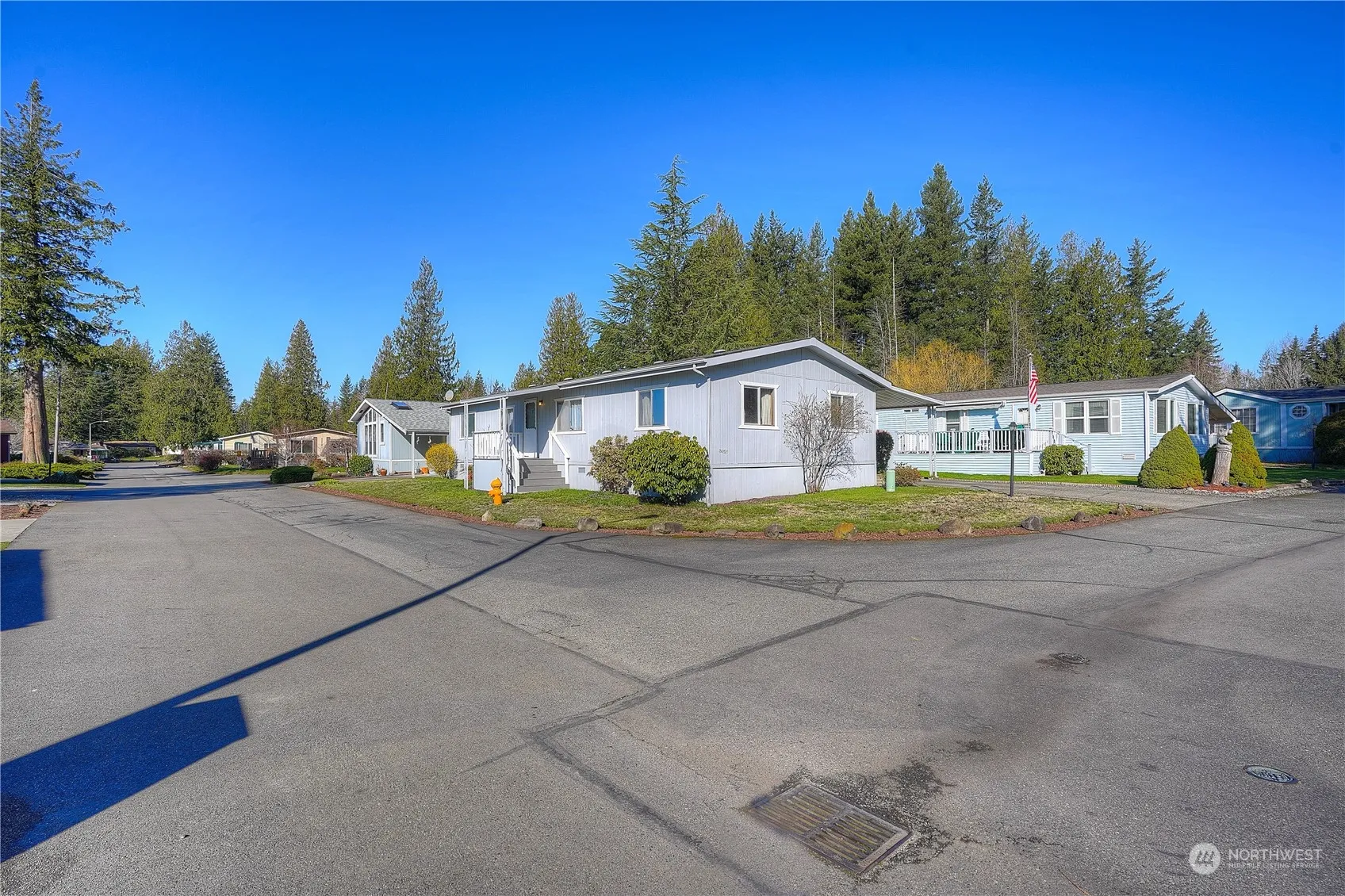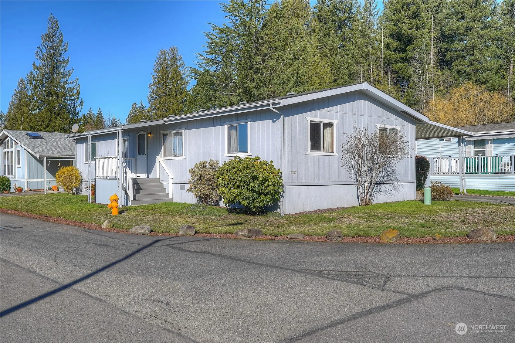 DESIRELABLE 55+SOUGHT AFTER SENIOR PARK IN ENUMCLAW. Breathe fresh mountain air & enjoy the community feel to this area that offers something for everyone. Located close to shopping, coffee shops & the Enumclaw Aquatic Center! Never a boring day! This unit is nestled on a corner lot & is bathed in sunshine /3-bdrm, 1.75-throom double-wide manufactured home a perfect retreat. Boasting vaulted ceilings and an open floor plan, the primary bedroom features an attached ensuite, providing ample space for relaxation. The spacious living and dining room layout allows for effortless entertaining, plus 2 bedrooms, carport and a shed. Ready for a refresh: with new carpet and paint this space can be transformed.