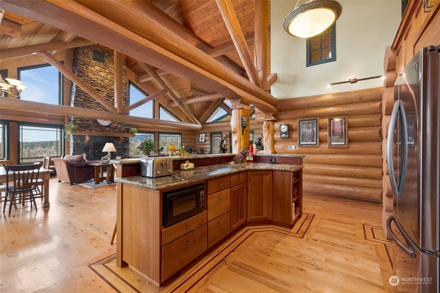 Fantastic Home with Two 4.94 acre parcels- 1 with the home and 1 vacant to build on Total of 9.44 acres. Home has 3 bedrooms, 2 baths with 2,826 sf. Grand vaulted ceilings give this home a lofty feel, while the stunning rock fireplace keeps it cozy. Many windows throughout to bring in the natural light. The kitchen stuns with rainforest marble countertops, cherry cabinets, and a beautiful custom stove. Take in the incredible water and mountain views from the purple heart deck. Throughout the home is hickory wood flooring with purple heart trim, extending to the bookcases and stairway gate. The river stone bathroom is not to be missed, with the 1800s dolphin foot tub and granite vessel sink atop a repurposed antique vanity. What a bargain!