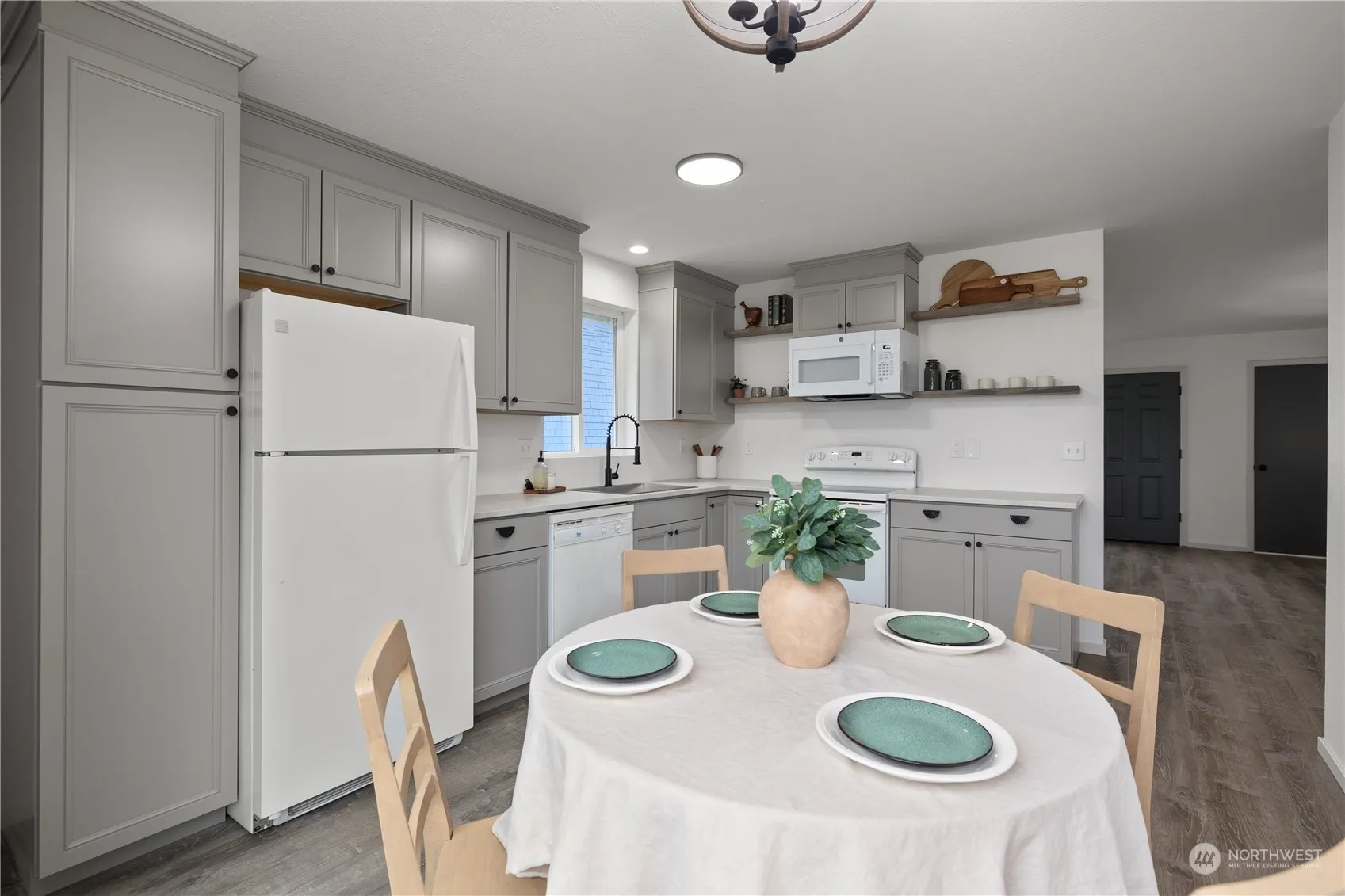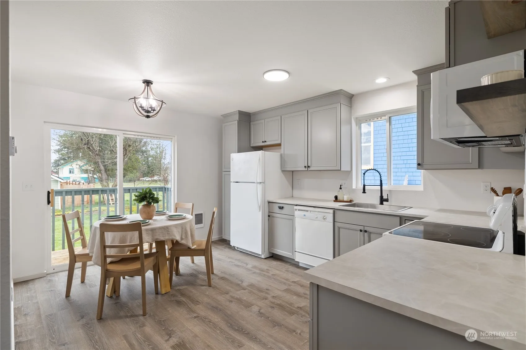 Looking for a renovated 3 bed, 2 bath home in Aberdeen? 307 E Curtis stands out with brand new paint inside and out, luxury vinyl flooring, new roof and fixtures throughout, and custom-designed kitchen! Things we love: – Stunning primary bedroom with full ensuite and walk-in closet – Added pantry cabinet in the kitchen for additional storage – Unique Manhattan Peal laminate countertops for durability – Two additional bedrooms that can easily fit queen beds plus closet nooks – Main bathroom located right around the corner from living, kitchen, and bedrooms for easy access – Sliding door to the back yard is great for entertaining – Tasteful and cohesive upgrades throughout – Attached two car garage for those rainy days.