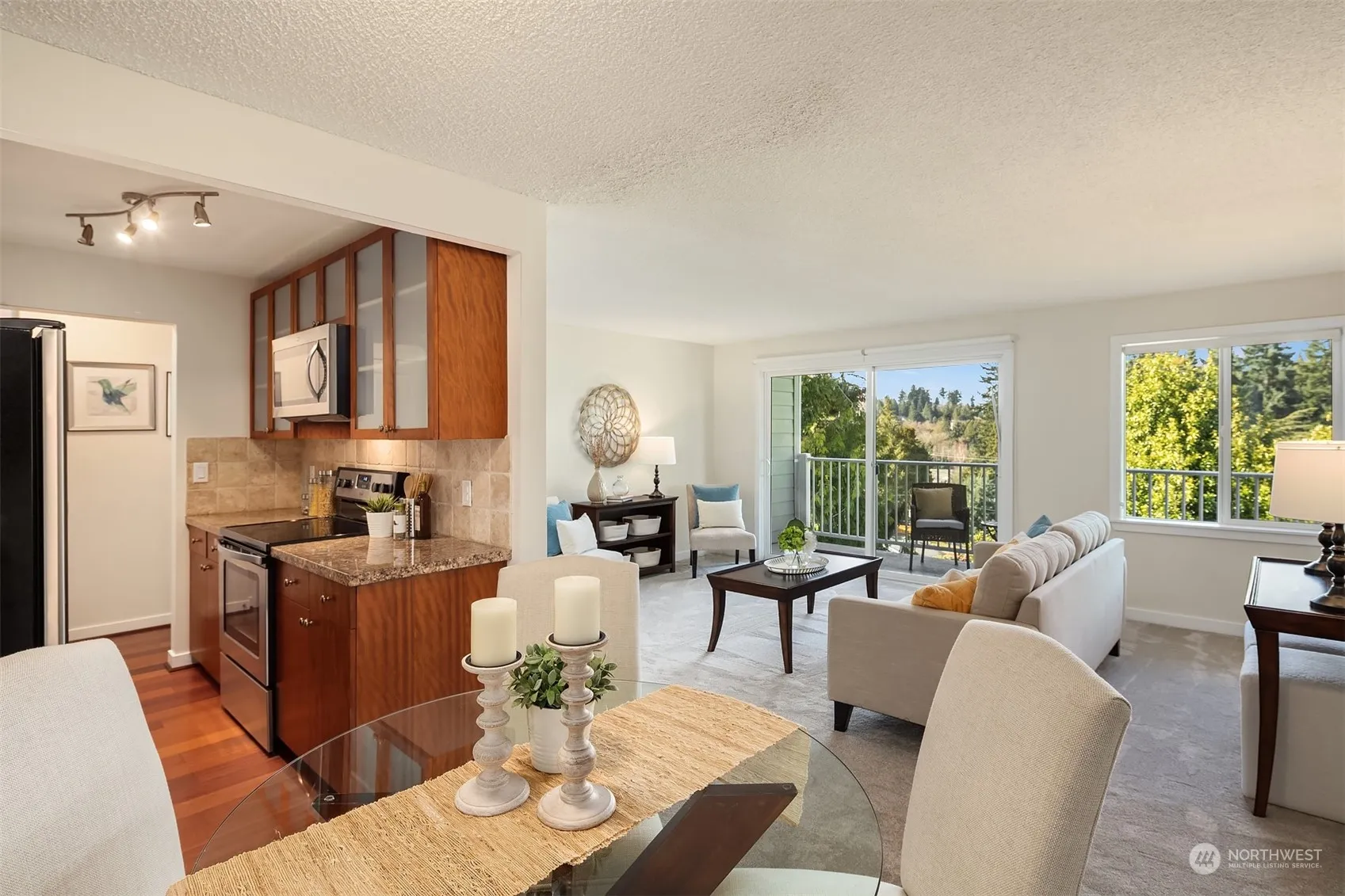 Welcome home! Located in the Edmonds bowl, this top floor two bedroom, two bath condo features an amazing location just blocks from shopping, dinning and parks. Enjoy views of the Puget Sound and Whidbey Island from this units wonderful westerly facing deck. This unit has a updated kitchen with granite counter tops and stainless steel appliances, updated bathrooms, double pane windows, new paint throughout the entire unit and new carpet. The primary bedroom features an attached en suit bathroom and large closet. The unit has one parking spot located next to the lobby entrance and a storage unit in the bottom level of the complex. Experience all that Edmonds has to offer.