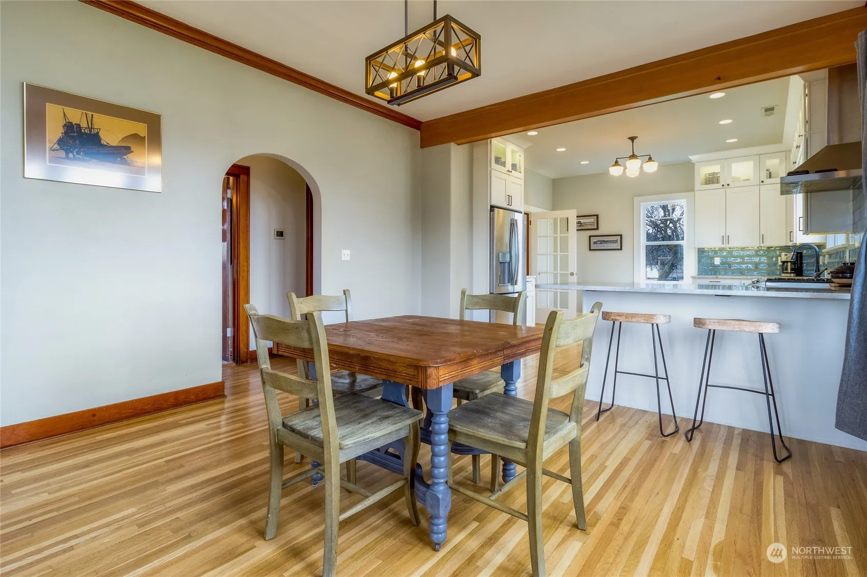 So much charm in this updated craftsman style farmhouse built in 1914. Enjoy your outdoor hobbies on the 1.5 acre+ lot w/ firepit area, fully heated & insulated shop, fenced area for pets. Complete kitchen remodel; window seat, ceiling high upper cabinets, quartz countertops, new appliances. Basement recently finished including egress window in the beautifully appointed primary suite & brand-new bathroom w/ double sinks, large rec room. Don’t miss the unique features throughout; shiplap, inset medicine cabinet, original crystal hardware, wood cased windows, schoolhouse light fixtures, artistic ogee archways, original refinished hardwood in many rooms, iron return ducts. Potential for attic to be finished, stairway from kitchen for access.