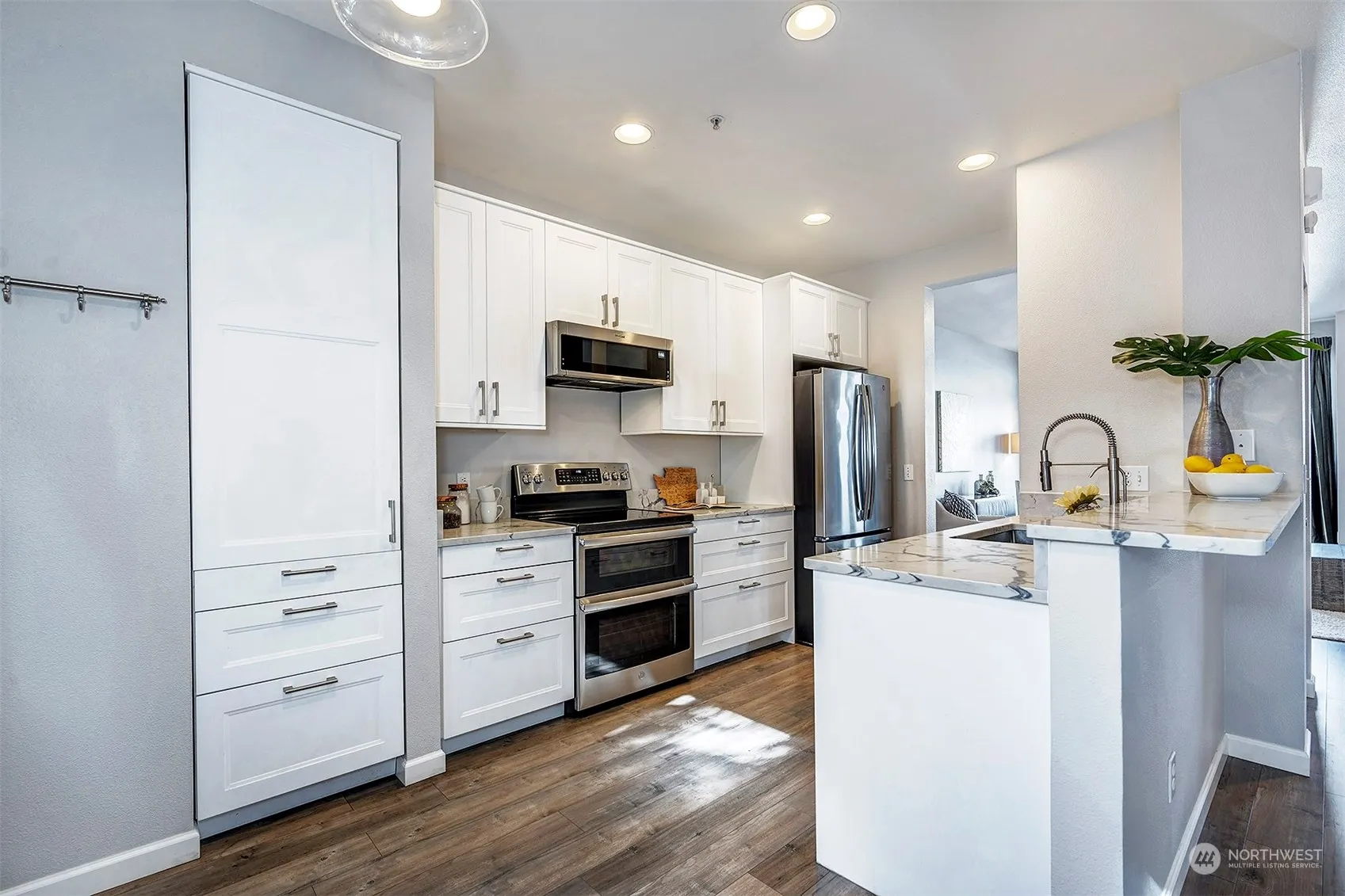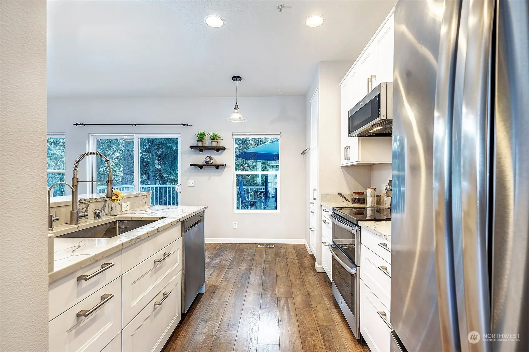 Welcome to this desirable end-unit townhome in the Cambridge Community. Enjoy the club house w/ gym, sauna & gathering spaces. The unit features 3 beds, 2.5 baths & a chef’s dream kitchen, w/ pristine quartz counters, & SS appliances, including a double oven. Retreat to the luxurious primary suite featuring a spacious walk-in closet & updated bath w/ a gorgeous quartz topped double vanity. Enjoy serene afternoons on 1 of 2 balconies or patio. The massive 2-car garage has ample space for cars & storage or perhaps a gym or workshop. Conveniently located in sought-after Northshore Schools & just minutes from I405, parks, walking trails, & Downtown Bothell & Woodinville, this home offers unparalleled convenience & lifestyle. No Rental Cap.