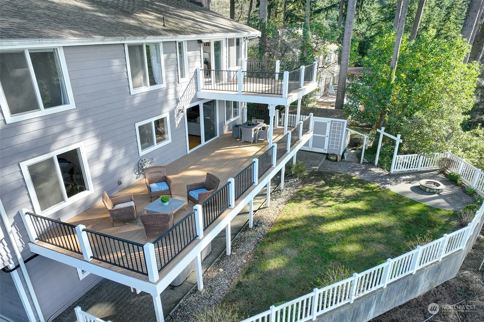 Absolutely beautiful home in Edmonds with panoramic views of Puget Sound, Olympic Mountains, Admiralty Inlet, Whidbey Island & gorgeous sunsets. The main floor of this home features an inviting den with warm fireplace, hardwood floors, great kitchen with breakfast bar, large view deck, atrium/dining room & living room with fireplace. Upstairs includes a primary bedroom with dual vanity bath, deck with spanning views, 2 more bedrooms & full bath. Lower level boasts a great room/den, kitchen area with sink, dishwasher, refrigerator & microwave, bedroom, full bath, plus a separate entrance. Perfect for private guest quarters. Outside you will find lush landscaping, a hot tub, fire pit, green grass terrace & shed. All with west-facing views!