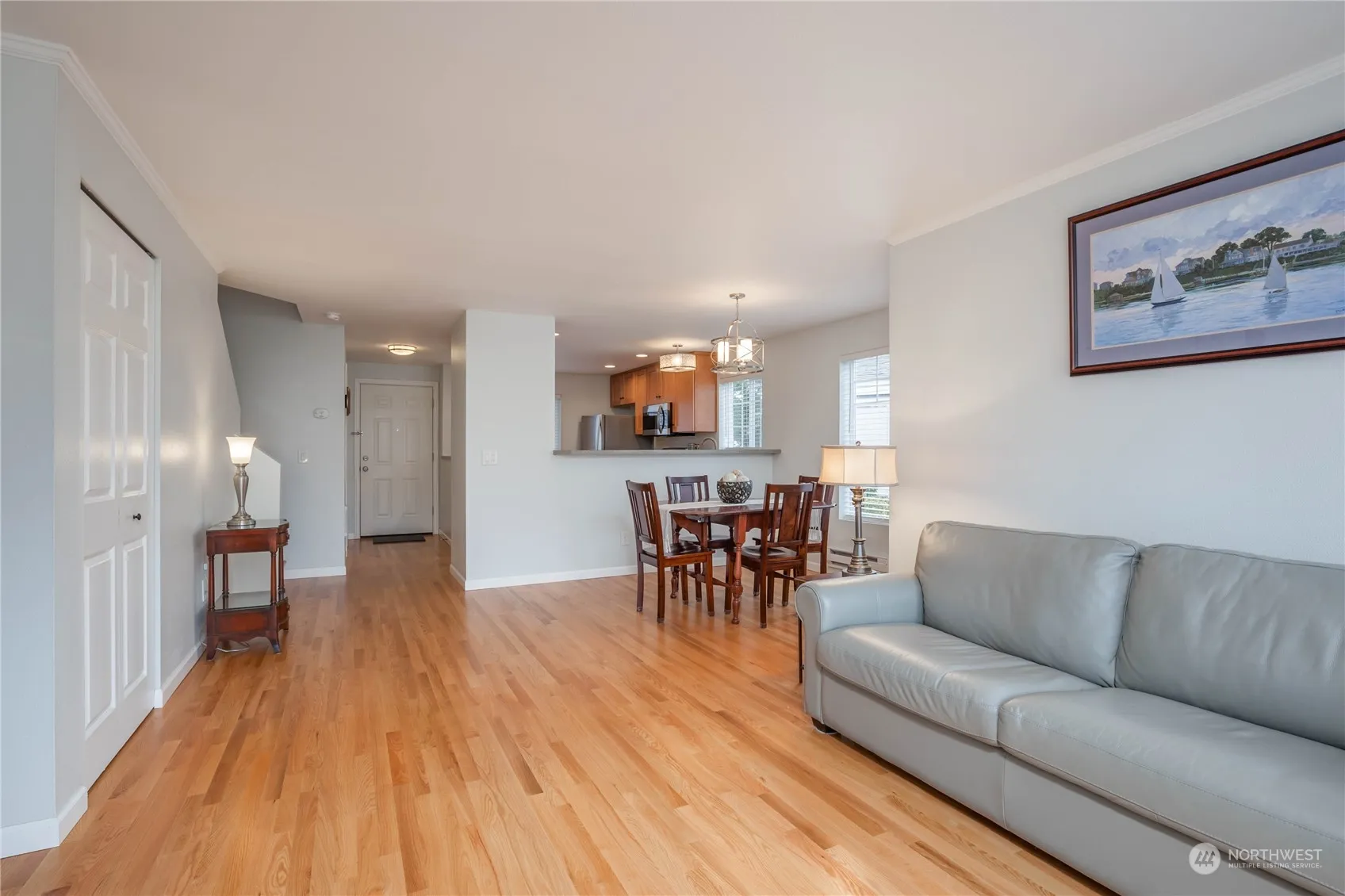 Beautiful end unit waterfront condo in Kent’s desirable Lakes complex. This home has been lovingly updated in the past 5 years from top to bottom: cabinets, counters, appliances, fixtures, bathrooms, doors, lighting and more! The generous kitchen has ample counter space and plenty of room for all the cooks in your household. Open concept living area has gorgeous hardwood floors and wonderful natural light. The recently rebuilt composite deck is a fantastic place to relax, watch the local birds and enjoy the lovely lake view. Primary suite includes private full bath, double closets and view of the lake. Attached garage and plenty of guest parking. Close to trails, schools, shopping, transit. All the work has been done, this is move-in ready!