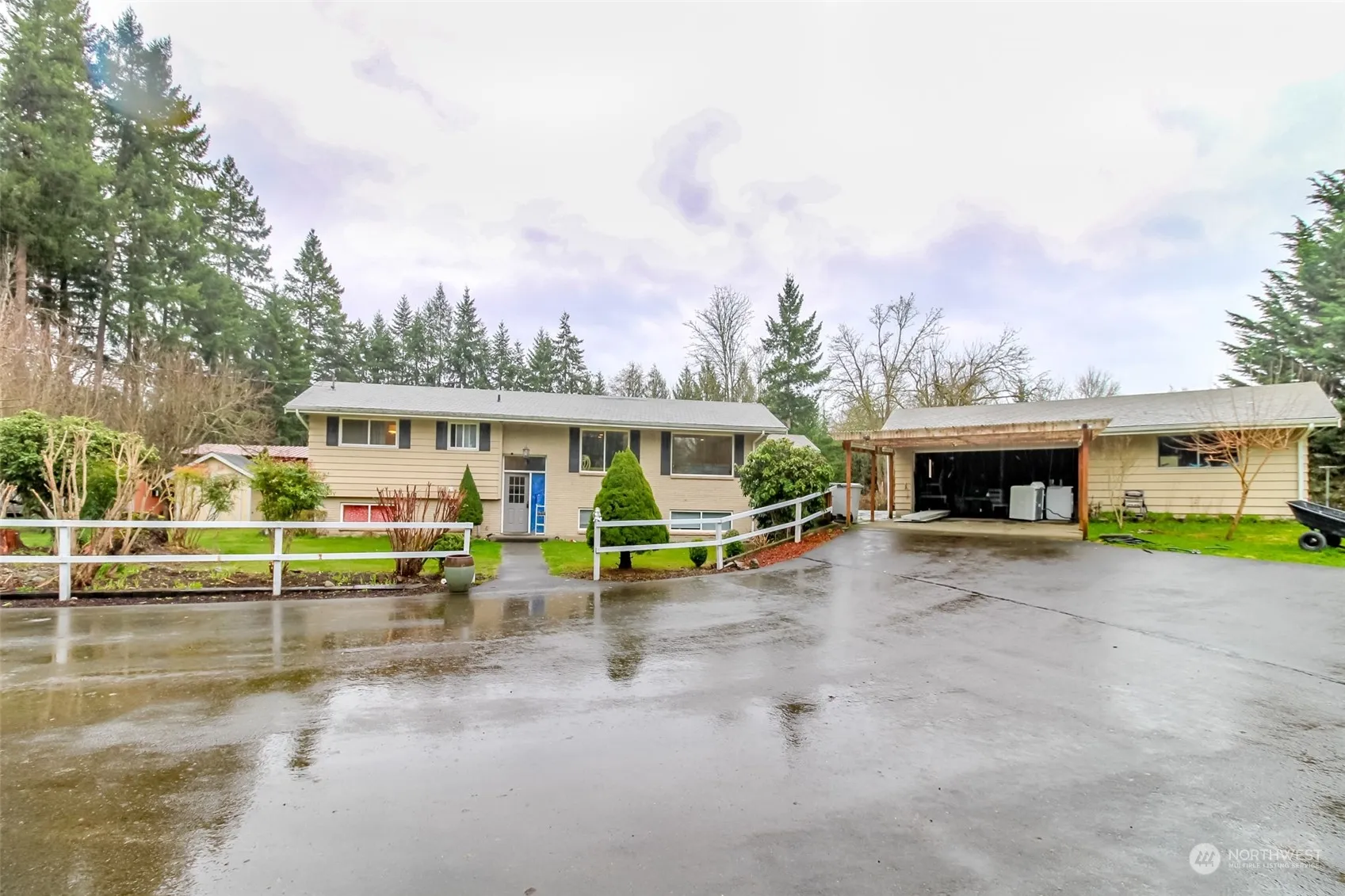Home on Acreage! You get more than a classic split-level home with this property. Property is located in the Kent/Covington area and yet feels like a rural setting. Down the private driveway you will find lots of open space with room for RV’s, outbuildings, pasture land, and more! Paved circular driveway surrounds a level, secluded area that would be perfect for gatherings, picnics, or maybe a venue or two, with plenty of parking. Barn w/stalls, plenty of outbuildings, garden area and fruit trees. The home is a 4bd/2ba with bonus rooms, finished daylight basement with private entrance, wired for a generator, and endless possibilities. New filtration system and well motor. Take a look at this amazing opportunity!