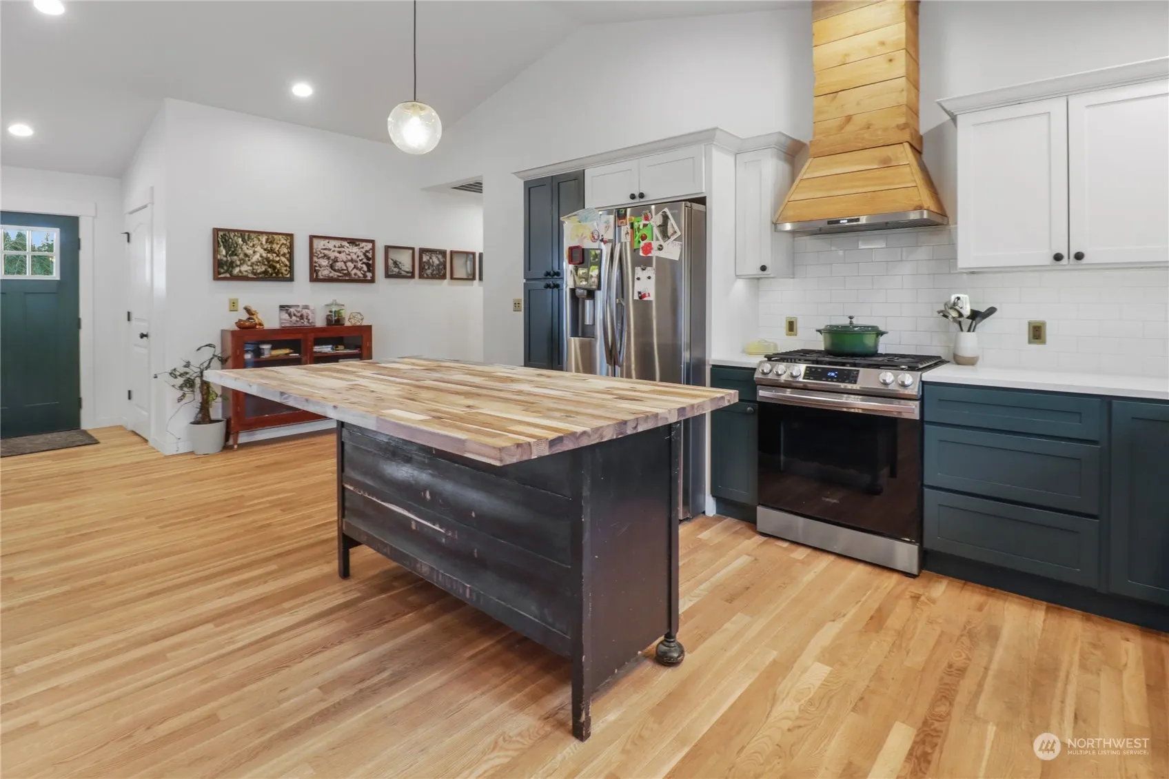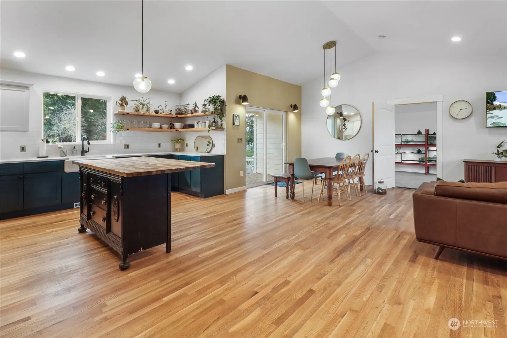Wonderful Almost New Rambler on Acreage! 3 bedrooms, 2 bathrooms. This home & property has it all! Floors are true hardwood luxury vinyl plank & concrete. Open concept living room, dining room & kitchen w/vaulted ceiling. Huge cold storage room. High end lighting & push button light switches. Kitchen w/farmhouse sink, quartz counters, butcher block eat-in island & custom shelving. Primary bedroom w/pendant lighting, sitting area, walk-in closet & bathroom. Heat pump – air conditioning! Covered front & back porches w/giant back patio. This home & property is perfect for entertaining! Property is fully fenced. Concrete pad & large driveway for plenty of parking. Buyer/buyer’s agent to verify all information to own satisfaction