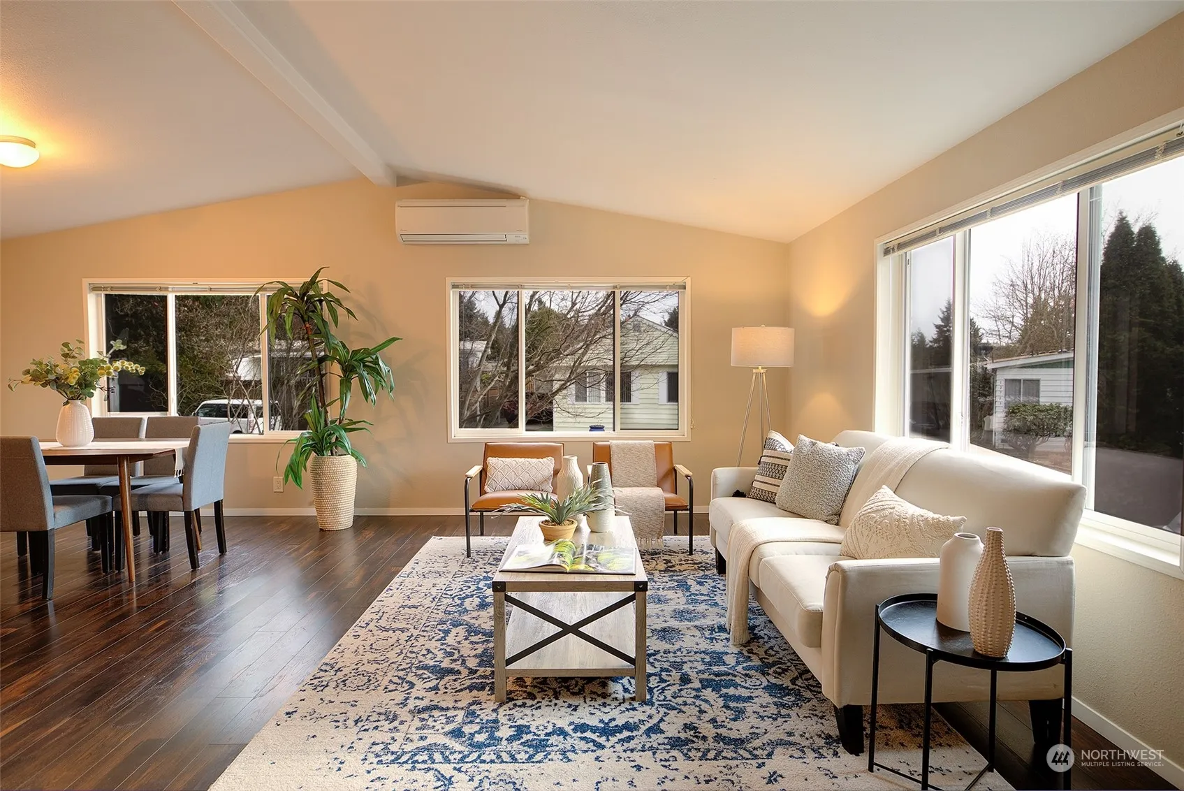 The perfect blend of comfort and style, this lovely 3-bed, 1.75-bath home, is nestled on a picturesque lot in Hollyhills. Amazing location in highly coveted Northshore School District, close to highway access, parks and schools. This well-maintained home boasts vaulted ceilings & expansive windows, creating a bright atmosphere. Open floor plan connects the living spaces & spacious kitchen w/ample storage. Large primary bedroom with en suite bathroom. Dedicated laundry/utility room. Escape the summer heat: A/C installed in 2020! Freshly painted exterior and interior. RV parking. Land is owned. Community has a clubhouse, sport court & tranquil greenbelt. Everything you could want, a fantastic value! Pre-inspected, with 1 year warranty!