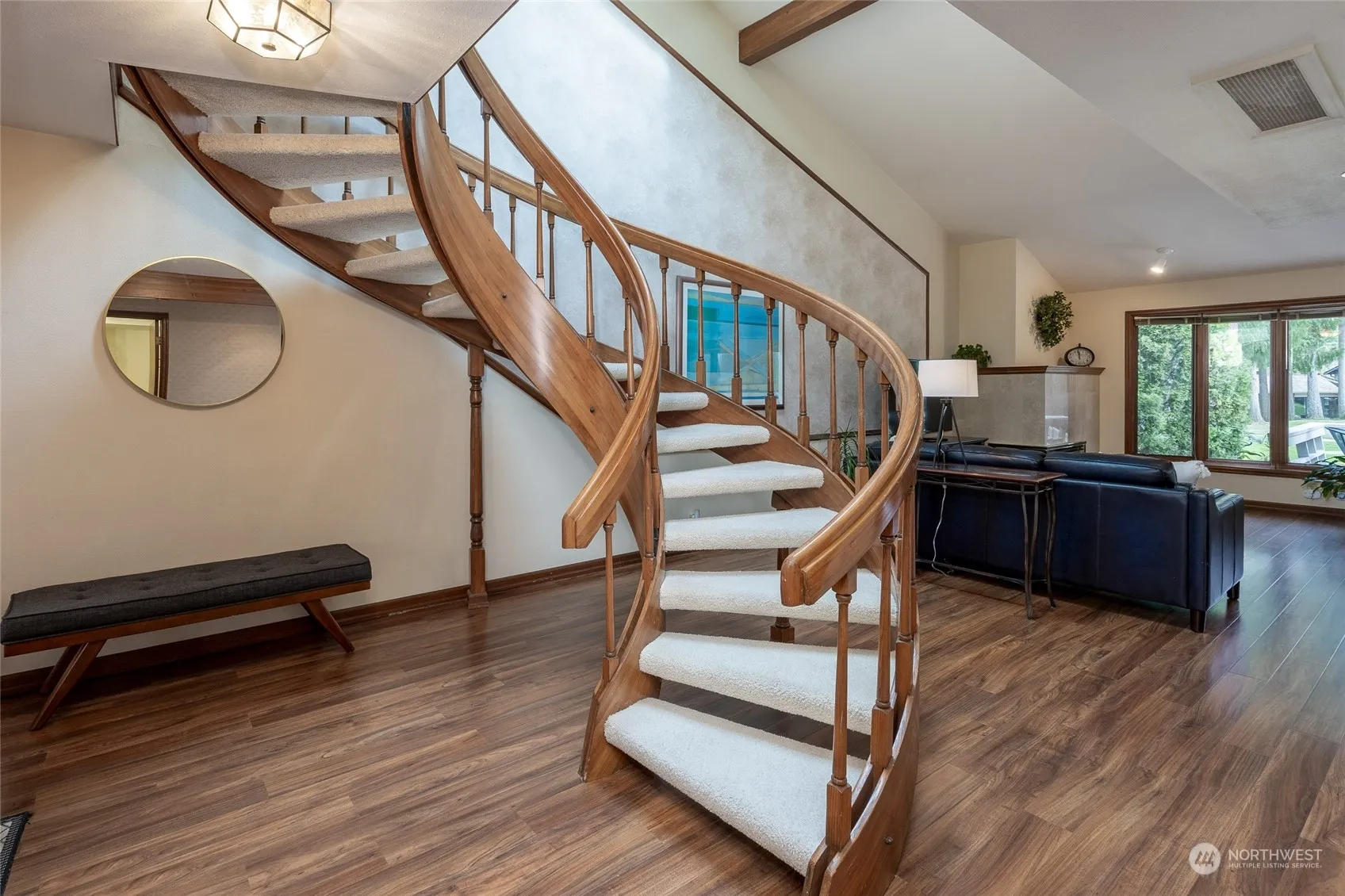 Stratford Greens, Gated Community on the golf course. Panoramic VIEW of the 16th Green/Fairway/17th Teebox/fairway. Every corner & detail will astonish and captivate your imagination! $$$Thousands in recent upgrades: Newer wood laminate flooring/Great rm w/gas fireplace. New kitchen w/granite slab counterops/tiled backsplash/under cabinet lighting/wine cooler/gas cooktop. Dining area w/French doors & phantom screen doors lead to the newer entertainment sized golf course view deck. Spiral staircase leads to loft office area. Primary retreat w/private deck/newer tiled full bath w/heated floor/walk in shower/soaking tub. Second primary suite w/full bath. Walk to MC Town Center. MCCA w/ miles of groomed walking trails. Home is Move in Ready!