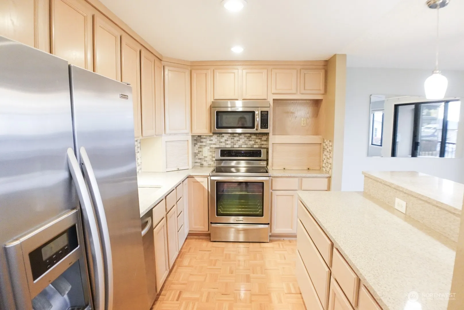 Welcome home to Mariner Manor in the heart of Des Moines’ Marina District. Whether you’re watching the ships pass by or the weather roll in, you’ll love the expansive southernly facing Puget Sound views from the kitchen, dining, living room, and the deck. 2 bd 1.75ba 1,430 sq ft including walls of closets, lrg utility rm, and a spacious primary bedroom and bath with walk in closet. Upgraded kitchen with stainless steel Kitchen Aid appliances. Mini-split AC and view preserving solar shades keep you cool during the warmer months while the granite wrapped fireplace will keep you warm all fall and winter. Gated community with garage parking, secured lobby entry, gorgeous courtyard garden with water feature, outdoor pool, hot tub, & BBQ area