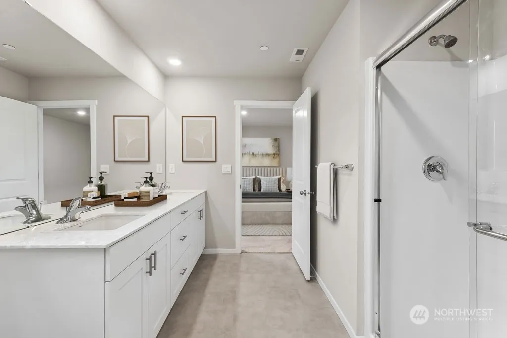 MOVE-IN READY, EAST facing Addington at Blue Meadows by D.R. Horton! Situated in the most perfect location! As you step inside, the open and airy layout welcomes you with high ceilings, and expansive windows that flood living spaces with natural light. The kitchen featuring stainless steel appliances, sleek countertops, and modern grey shaker like cabinets – a perfect blend of style and functionality. The primary suite offers a private bathroom and walk-in closet. The additional two bedrooms are generously sized, providing comfort and flexibility for various lifestyle needs. Nice, landscaped lot! AC included! Home of the week includes washer, dryer, & fridge! Buyers must register their broker on site at their first visit.