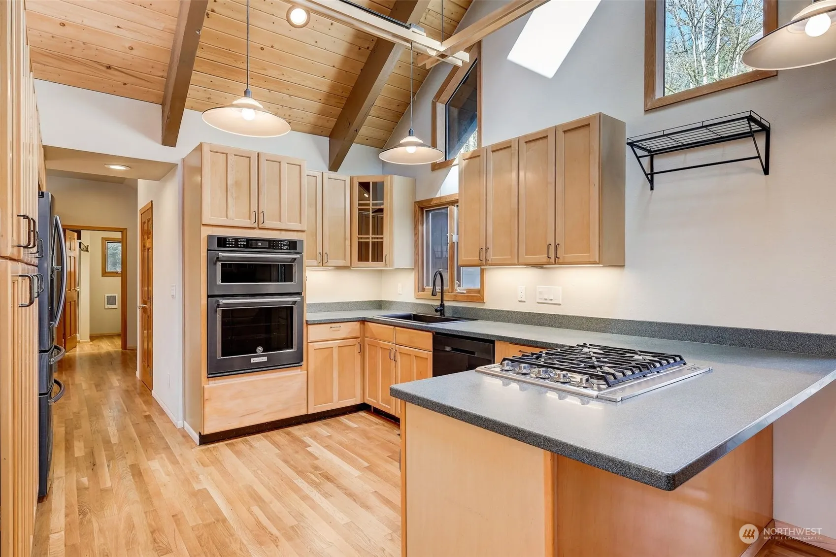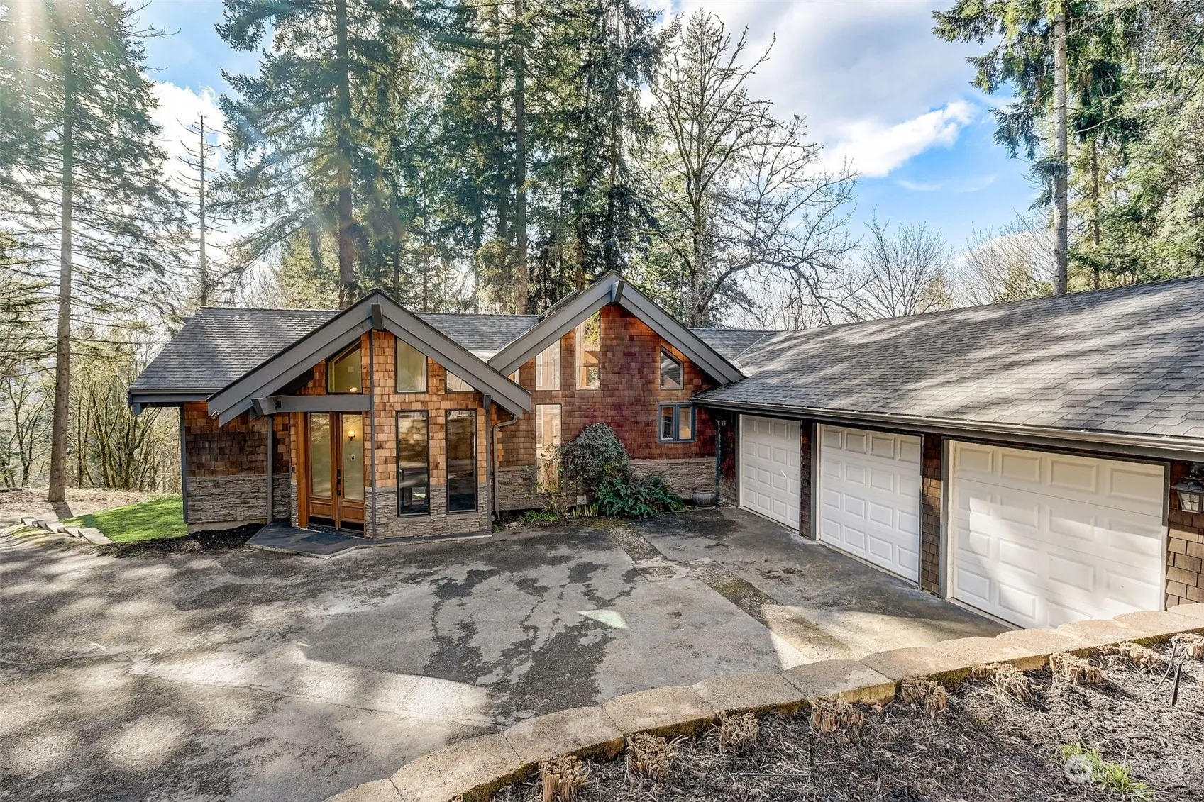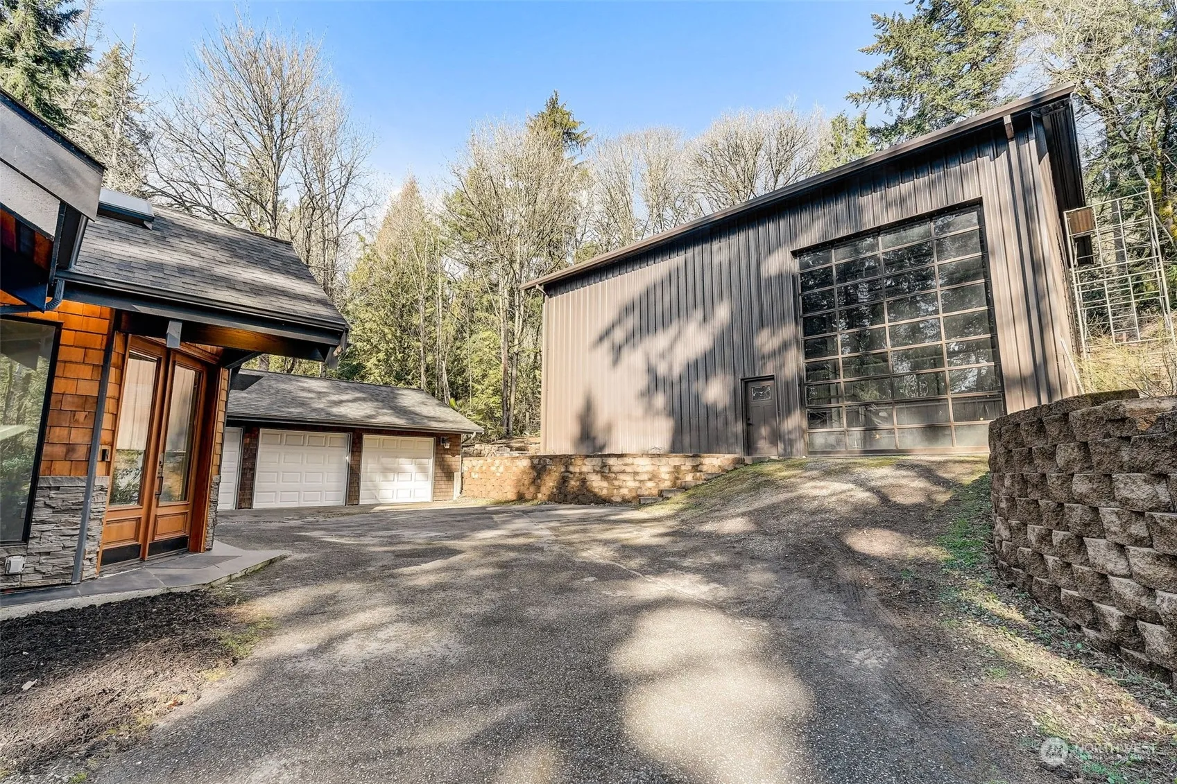 Welcome to this stunning 4-bed, 3-bath home nestled on over 1.6 acres of privacy. Featuring front entry glass dble doors & heated tile floors, white oak floors & floor to ceiling windows. Kitchen w/ Viking gas stovetop & SS appliances. Main bathroom & downstairs bath have heated floors. Downstairs area has plumbing ready for an easy addition of a MIL unit. The roof was replaced in 2019, furnace in 2016 & decking in 2023, a full house filter, heat pump ready with pad & piping installed. 3 car attached garage. Zoned light commercial w/ a 35×50 3-story steel bldg w/fire station glass doors & radiant floor heat ready for hookup. A powered & tiled chicken coop, terraced garden plots, apple & cherry trees. Buyer agent commission negotiable