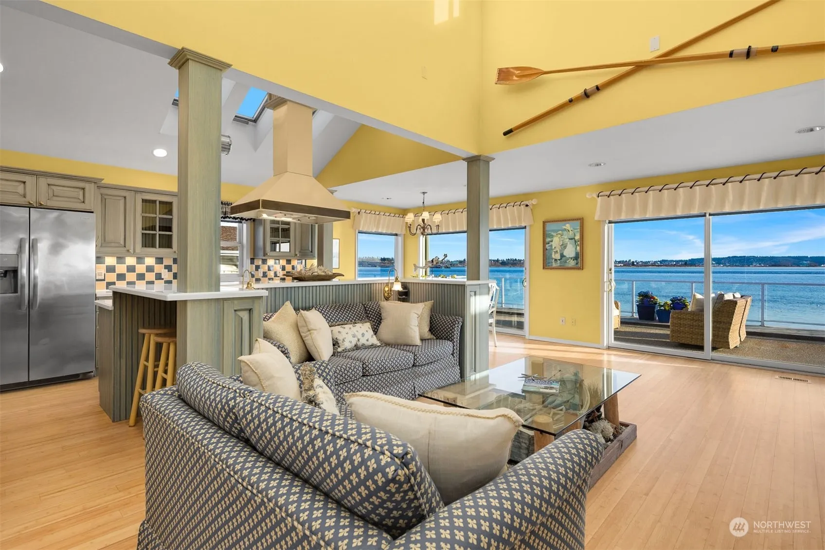 On one of Puget Sound’s best-kept secret & accessible no-bank beach fronts is this extraordinary south-facing custom beach house that takes in rare, dynamic & endless views of the Everett skyline, Mt. Rainier, Cascade & Olympics, golden sands of the Jetty, Hat Is, Whidbey Is. & ferries crossing Possession Sound. As chic as it is magical, this special home offers a harmonious connection w/water & nature: sublime outdoor living w/protected wrap-around patio+boat well—perfect for summer parties! Fine details + a design thoughtfully curated from stem to stern for gathering & one-level luxury living: chef’s kitchen & utility, circular plan w/vaulted ceilings, lrg picture windows/sliders & serene primary w/spa-like bath + Fun/useful loft. WOW!