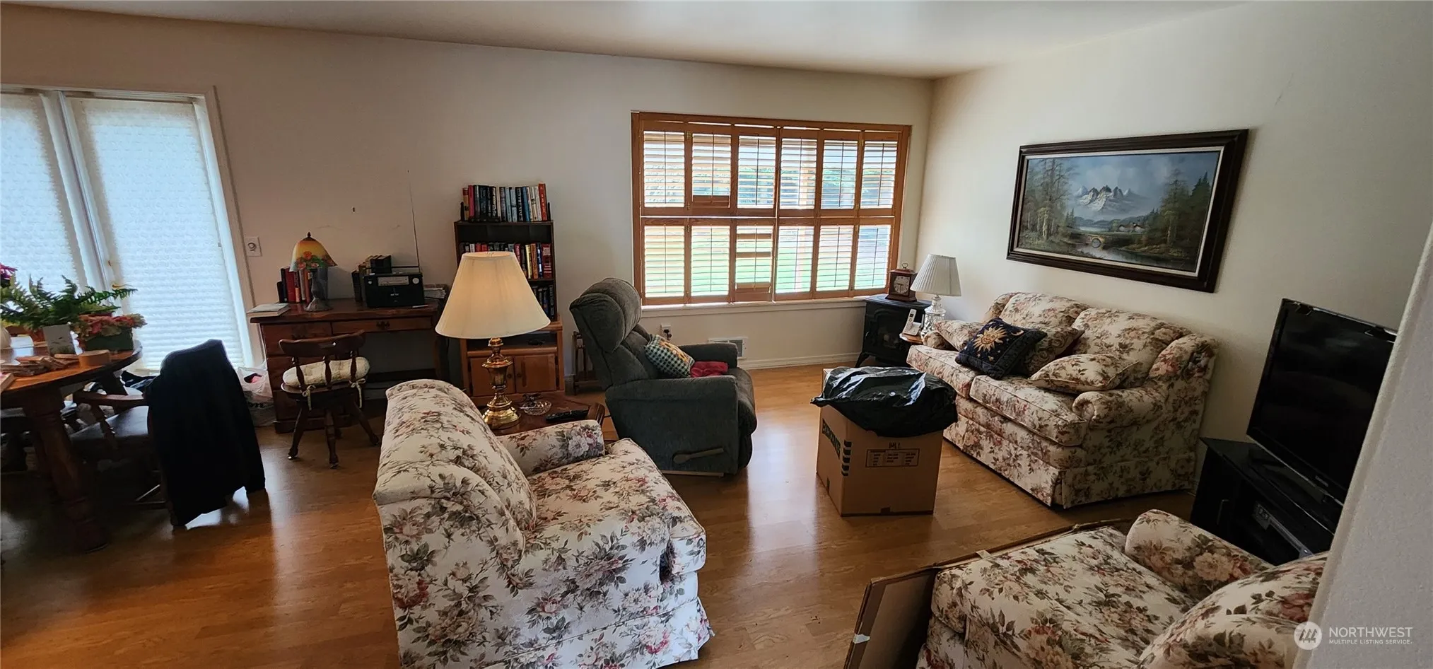 Meticulously maintained 3 bed 2 bath rambler nestled in the coveted Dungeness Estates neighborhood. This inviting home welcomes you with an open concept layout, accentuated by vaulted ceilings that create a spacious and airy atmosphere. The large living room flows seamlessly into the dining area. A spacious kitchen awaits your culinary adventures, while the expansive primary bedroom, complete with a walk-in closet and en-suite bathroom, offers a private retreat. Outside, a drive-through driveway, a generous 2-car garage, and a vast backyard with mature landscaping and a large outbuilding promise endless possibilities. Enjoy the outdoors on the extensive covered front deck or the ample back deck, perfect for relaxation and entertainment.
