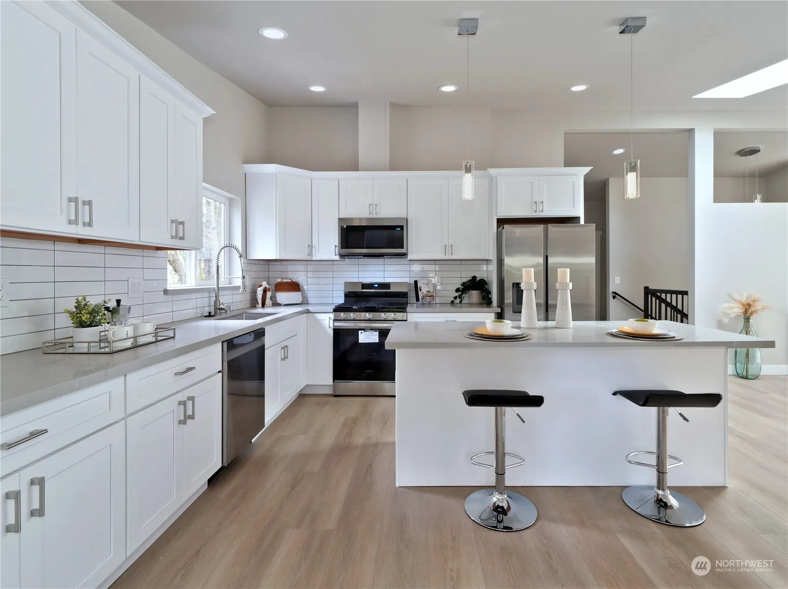 Fully permitted remodeled mid-century modern rambler with basement. Main floor has vaulted ceilings with lots of natural light. Brand new flooring, interior/exterior paint, bathrooms, and kitchen. Minisplits throughout upstairs and family room in basement. Separate entry to basement with wet bar, electrical, and plumbing for second kitchen. Potential for MIL unit or future owner can apply for permit to convert basement to ADU. Whole house is rewired and replumbed. New electrical panel with subpanel in basement. Covered patio overlooking spacious yard that has just been hydroseeded. Quiet cul-de-sac with easy access to freeways, major highways, and future light rail station (estimated 2024).