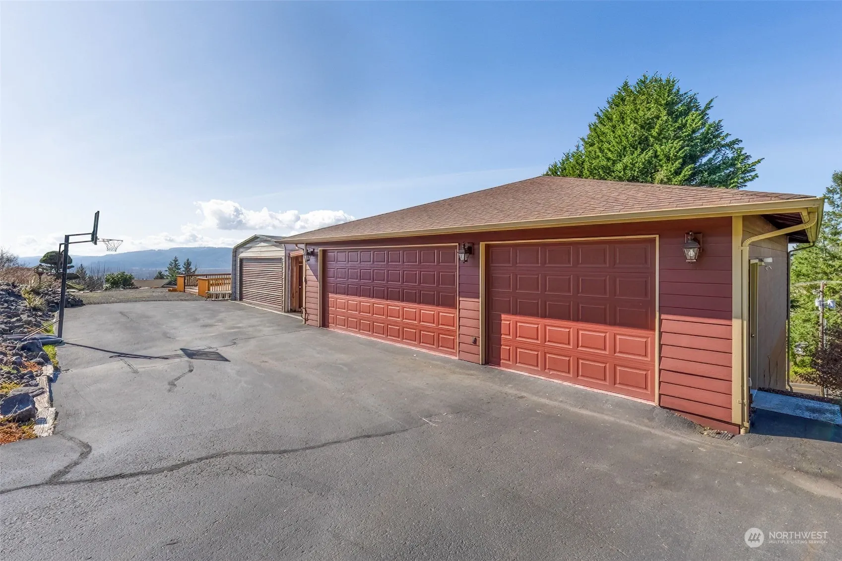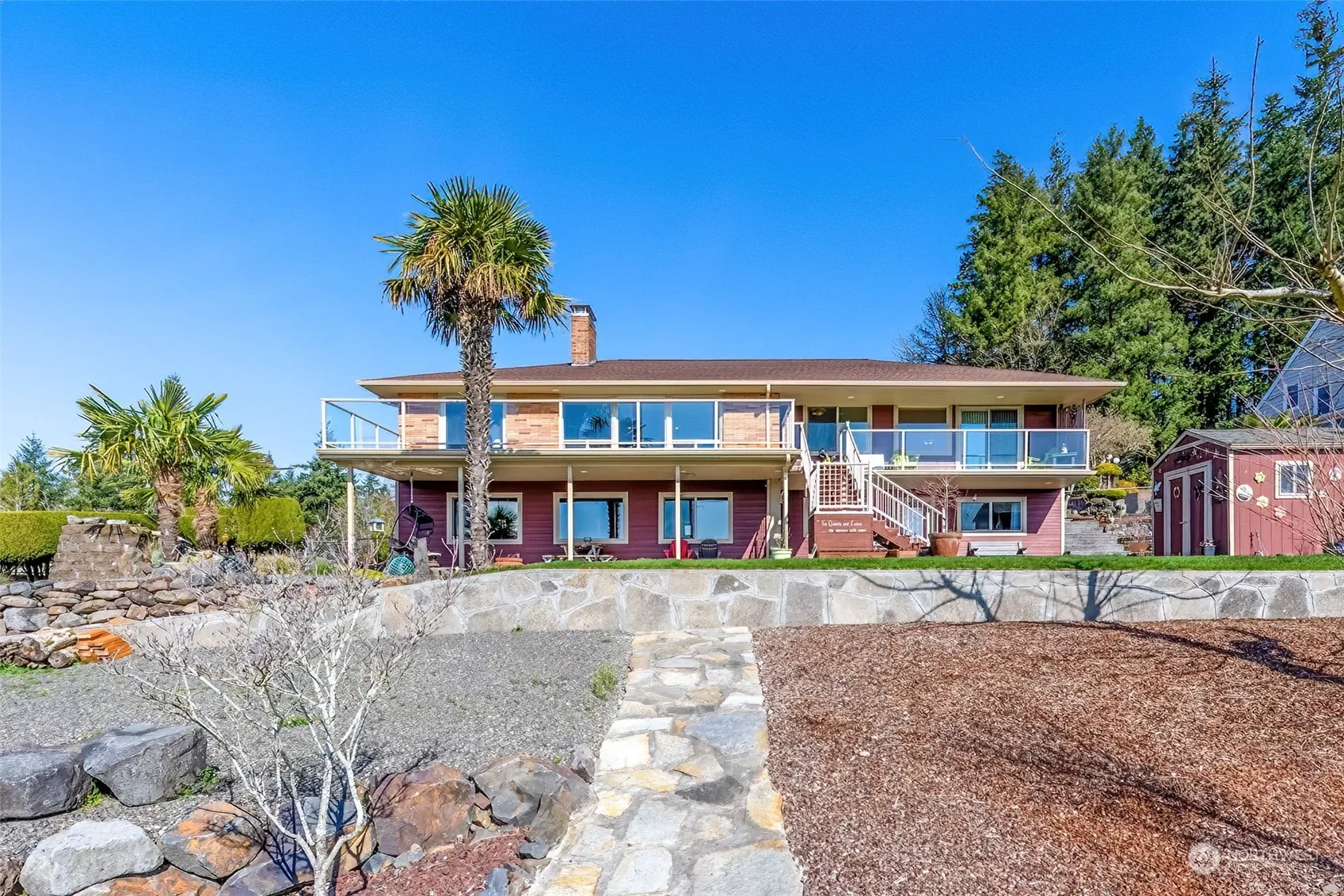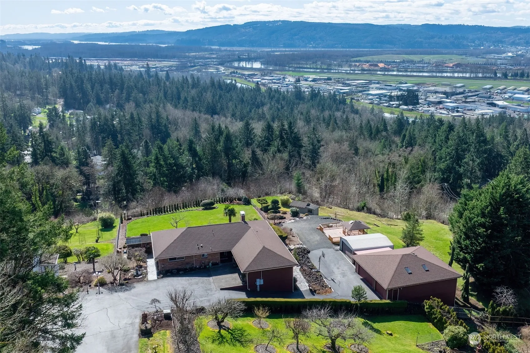 Amazing views of valley and river!! Beautiful updated brick home on dead end road offers quiet privacy! Enclosed parking for up to 10 cars! Features include new plumbing, windows, newer roof and ht/pump. Kitchen with gas stove and stainless appliances, hardwoods throughout main level. Dining rm opens to spacious deck. Could be one level living with possibility of ADU. Lower daylight features mini kitchen, fireplace, huge living or rec room, bedroom (could easily be two) sauna, 3/4 bath, laundry rm. Gorgeous stamped concrete covered patio with Koi Pond, large Gazebo for entertaining shed/greenhouse. 2 car attached garage. EV plug. shop with 1/2 bath and auto lift. Just under 3 acres recently surveyed also available.