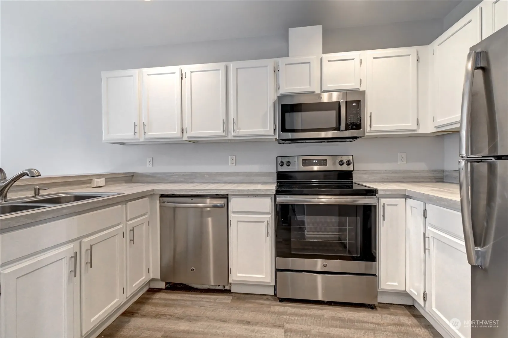 Discover the charm of this beautifully remodeled townhome! The main floor dazzles with newer flooring (brand new carpet), an updated kitchen with stainless steel appliances, new microwave, and a cozy gas fireplace. Enjoy the convenience of a powder room, private deck, and yard. With additional storage and a 1-car attached garage, space is never an issue. Upstairs, retreat to the primary bedroom with en-suite full bathroom(new toilet) and walk-in closet, alongside two spacious bedrooms, a full bath, and a convenient laundry room (fairly new washer&dryer). Nestled on a quiet dead-end street, yet close to I-5 & I-405, this home offers the perfect blend of tranquility and accessibility.