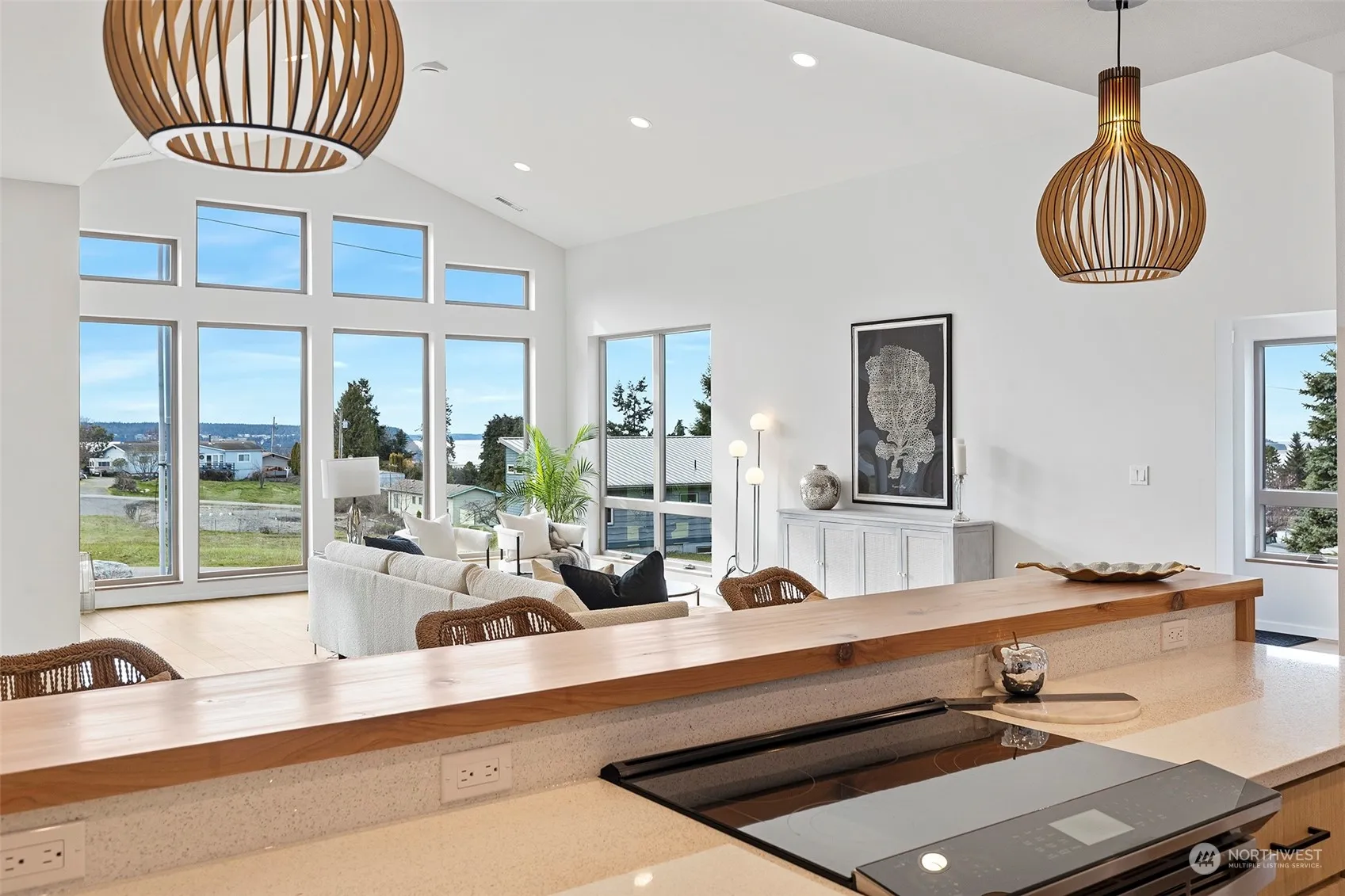 Gorgeous, high-quality new construction home on oversized lot backing up to green belt in waterfront community. West facing mountain, saltwater & sunset views from living room, kitchen, primary suite & yard. Single story living features 9′ ceilings w/ designer lighting, generous windows are airy & bright. Craftsman touches such as rift-sawn white oak solid wood custom kitchen cabinets & custom cedar slab bar. Secondary bedroom & office/bedroom connects to Jack & Jill bath & both have private patios. Enjoy everything this active destination community has to offer – more than 2 miles of walkable beaches, private marina & boat launch, clubhouse, pool, gym & beachfront picnic/BBQ areas. Mixed neighborhood of w/ vacation getaways & FT residents.
