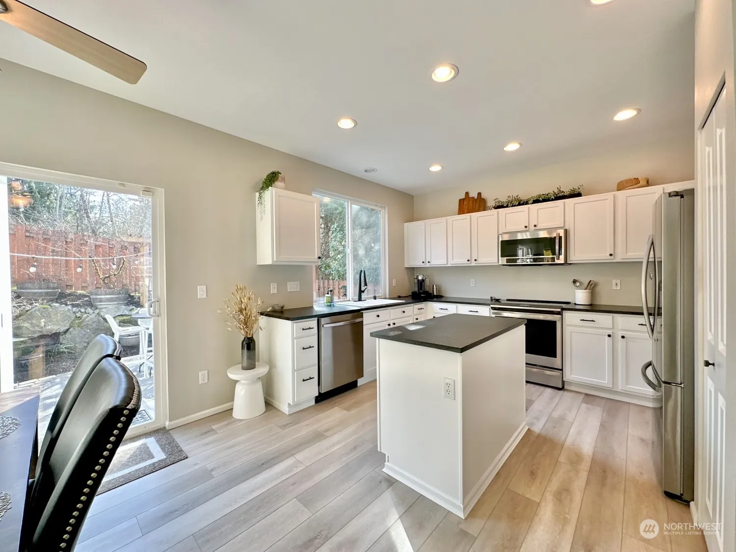 Beautiful home in the Aspens! Immaculate 4BD, 2.5BTH home, soaring ceilings and lots of light. Spacious contemporary renovated kitchen with newer induction stove, lots of cabinets, pantry, island, leathered granite. New paint/carpet upper level w/views of Tucker Park. A peaceful gardeners paradise w/sounds of nature, trellis w/grape vines, large stamped concrete patio, edible garden w/in-ground beds and containers. Many perennials: apple,blueberry,fig,cherry,currant,gooseberries, etc! Multi-zone irrigation system. Fully fenced yard backs up to quiet park. Garage has built in pantry for ample storage. Loft storage above. New roof w/upgraded smart vents! Community parks with playgrounds and walking trails. Easy access to major highways.