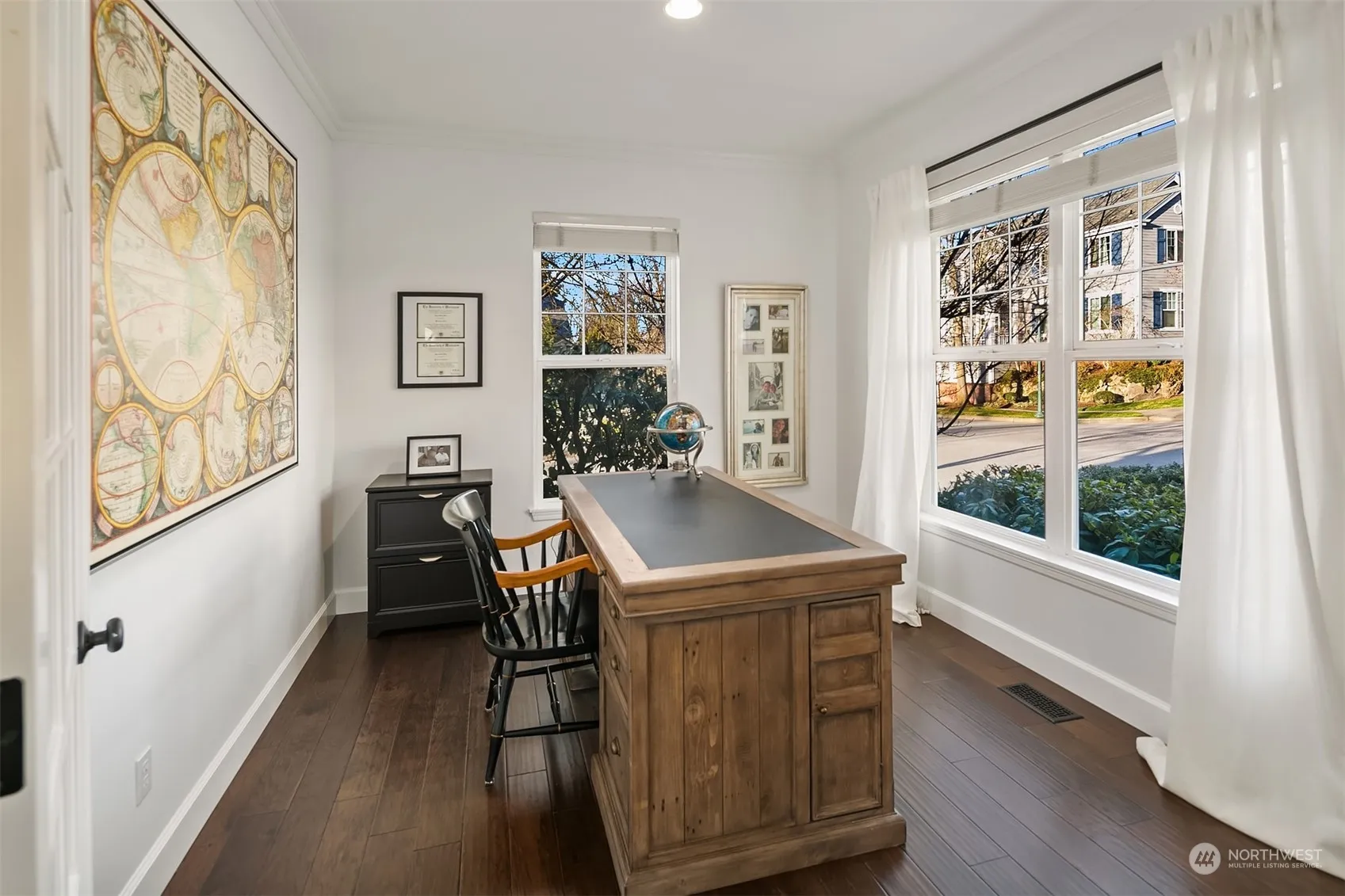 Masterfully remodeled from top to bottom, every last bit of this home is absolutely divine! This 3 bedrm home w/ a sizable office sits on a sunny corner lot w/ a fully fenced garden retreat. Loaded w/ fine upgrades, new baseboards, trim, millwork, built-in bookshelves, quality hardwoods, upgraded 2-car garage & more. Bright white dream kitchen w/ quartz counters, modern backsplash, high-end appliances & breakfast nk. Designer lighting adds to the charm & the color motif is perfection! Oversized owner’s room has the most incredible 5 pc bth- fully renovated w/ lux shower, new tile accents, barn door, freestanding tub & all new fixtures. Incredible location next to restaurants & shops. This house is a show-stopper, a great place to call home!