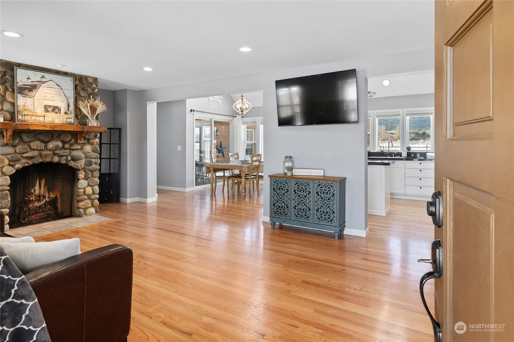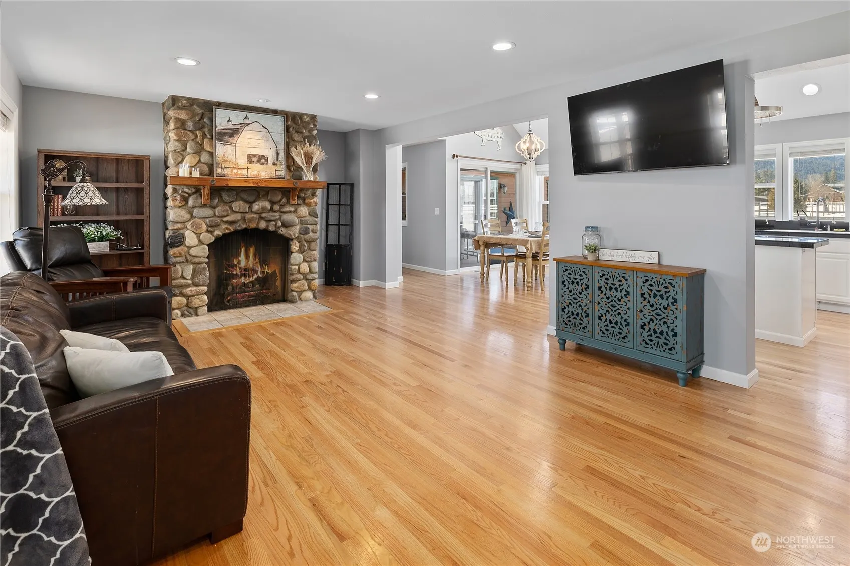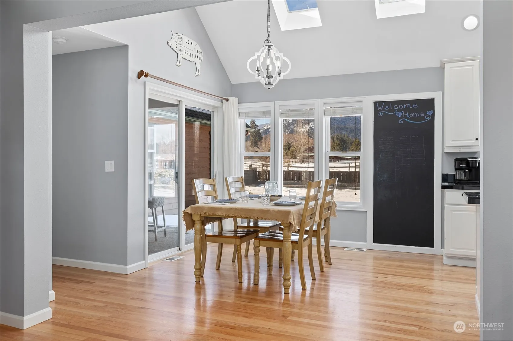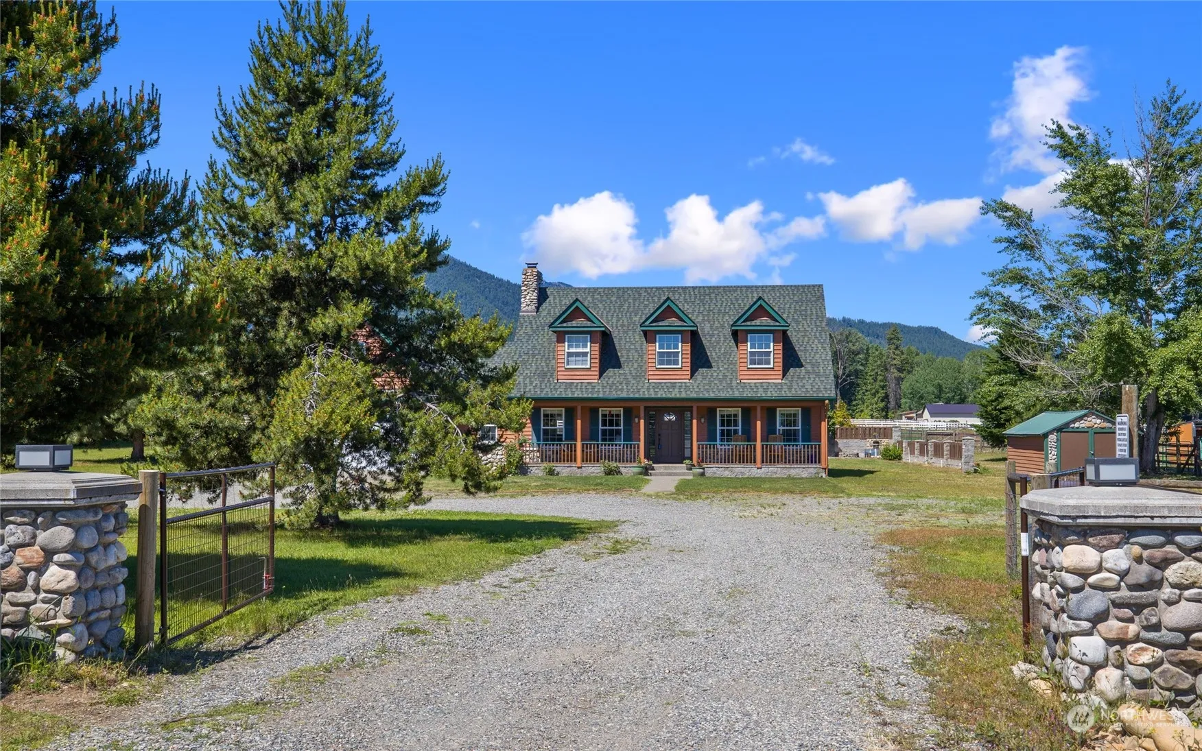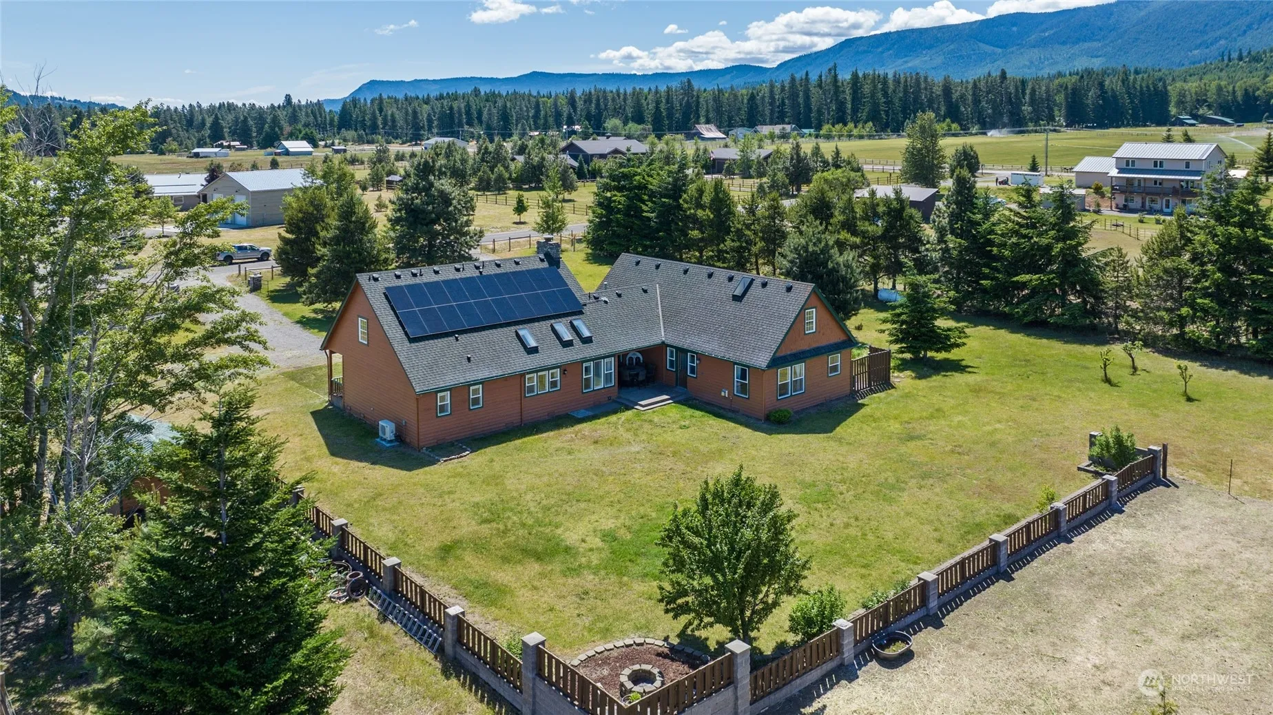 Equestrian Dream Property! Discover comfort & tranquility in this beautifully designed 1 1/2 story, 4-bedroom, 3-bath home in Nelson Siding neighborhood. Bask in the natural light that fills every corner of this inviting home, offering stunning views of the surrounding mountains and landsacpes. Set on 5 fully fenced acres, this exceptional property features an irrigation pond, loafing sheds, outdoor arena, an apple orchard, and a chicken coop—everything you need for a serene rural lifestyle. The home is impeccably maintained and eco-friendly features include solar panels and an EV charging station. Additionally, the property includes a one-bedroom, 3/4 bath apartment I deal for guests or additional income!