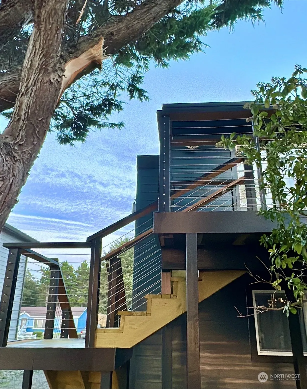 Exquisite Deck Remodel, New windows, and the impeccable Exterior Paint enhance the elegance of this 3 Bed/2 Bath home. A Peek-A-Boo view of the ocean. Laminate flooring in the main living area, leading to a thoughtfully updated kitchen Featuring High-End Stainless Appliances, including a MIELE Refrigerator & Dishwasher, and a Dual-Fuel WOLF Stove & Vent.The lower level unveils 3 generously sized bedrooms, highlighted by an expansive Walk-In Closet off the primary and a luxurious Walk-In shower. Enjoy the warmth of Two propane fireplaces – One Nestled in a the primary Bedroom, the other enhancing the upstairs living room. A convenient Drive-Thru Driveway accompanied by a Single-Car Garage. Schedule your private viewing appointments now!
