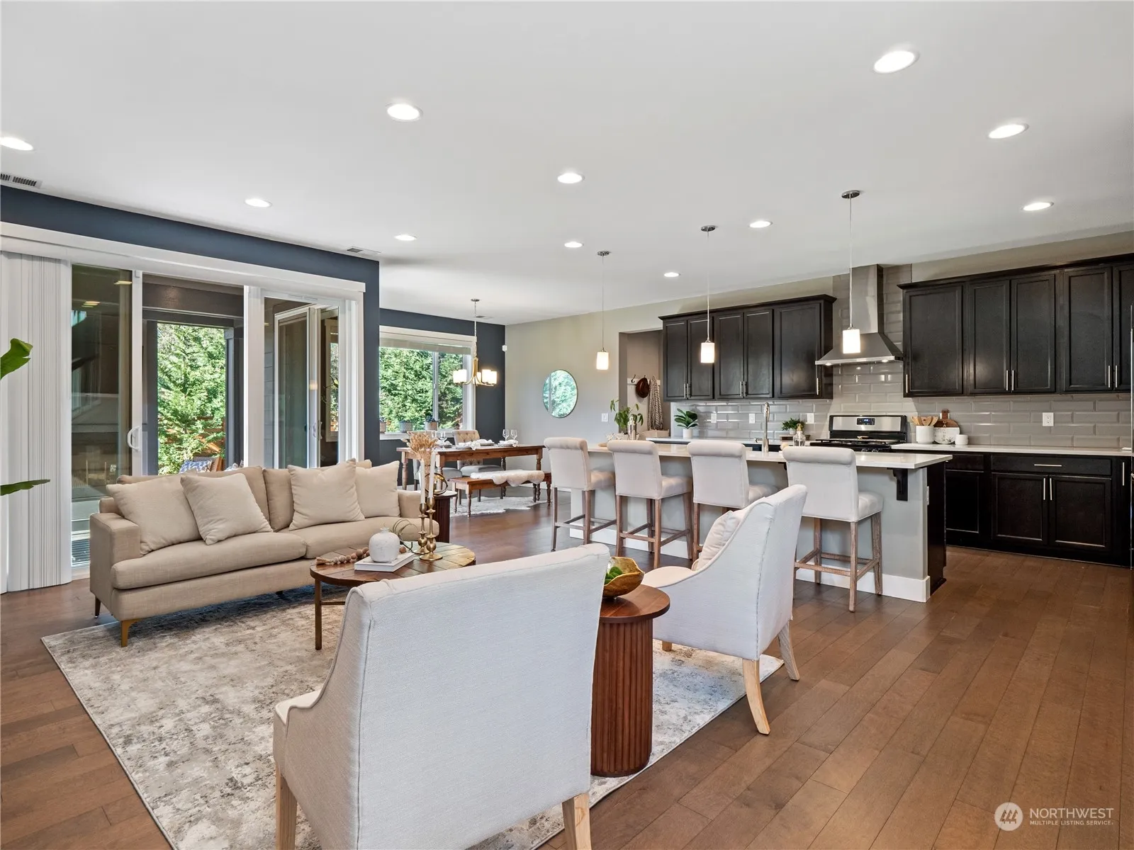 This beautiful Brookstone home is perfectly positioned in the heart of Tehaleh, on a large corner lot within the boundaries of Tehaleh Heights Elementary. The exterior greets you w/quintessential PNW features. The main level welcomes you with a grand entrance & an abundance of natural light, Junior Suite, living room, kitchen w/10 ft island, dining room, pantry, mudroom & access to the 3 car garage. From the living room & kitchen you’ll find 2 sets of glass doors that lead to the covered backyard living area w/fireplace. The 2nd level boasts a lovely landing, bonus room (perfect for an office, playroom etc) primary bedroom w/5 piece ensuite & large walk-in closet, 3 addtl beds, full bath & laundry room. The home has A/C & brand new carpet.