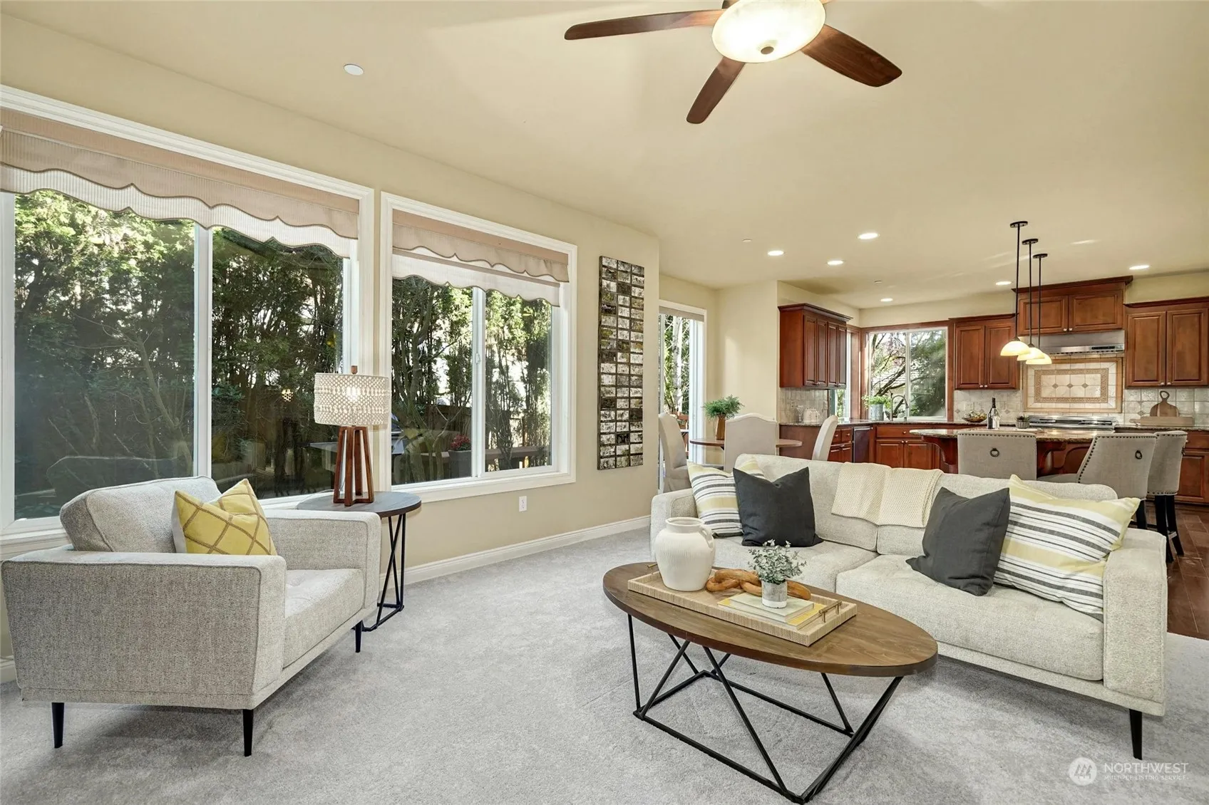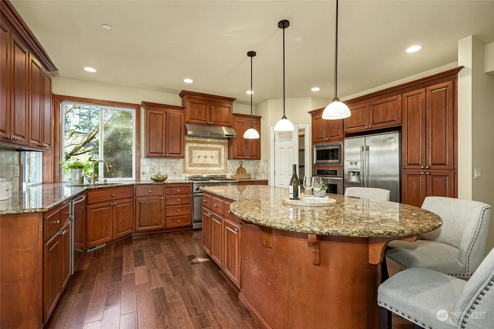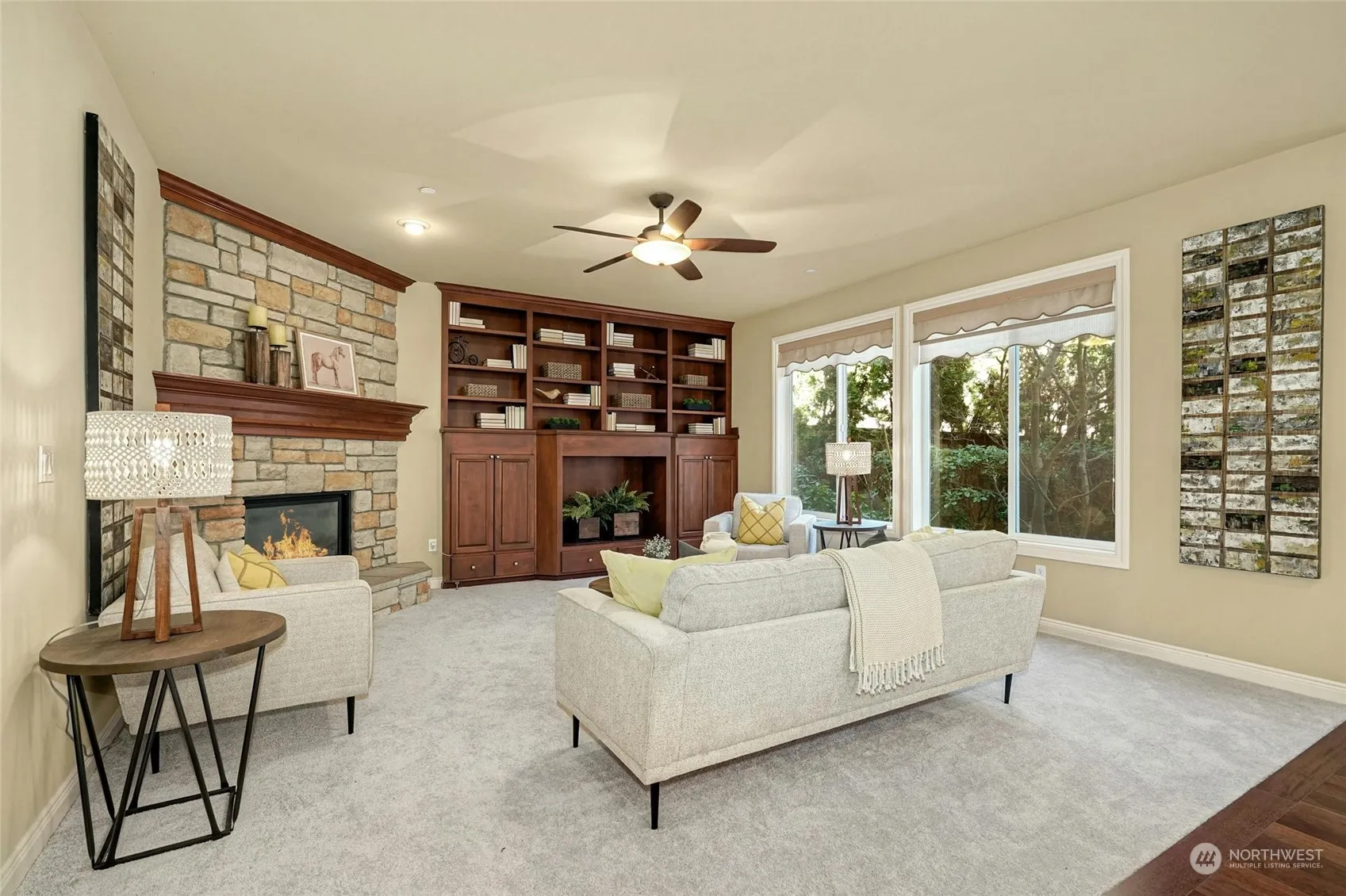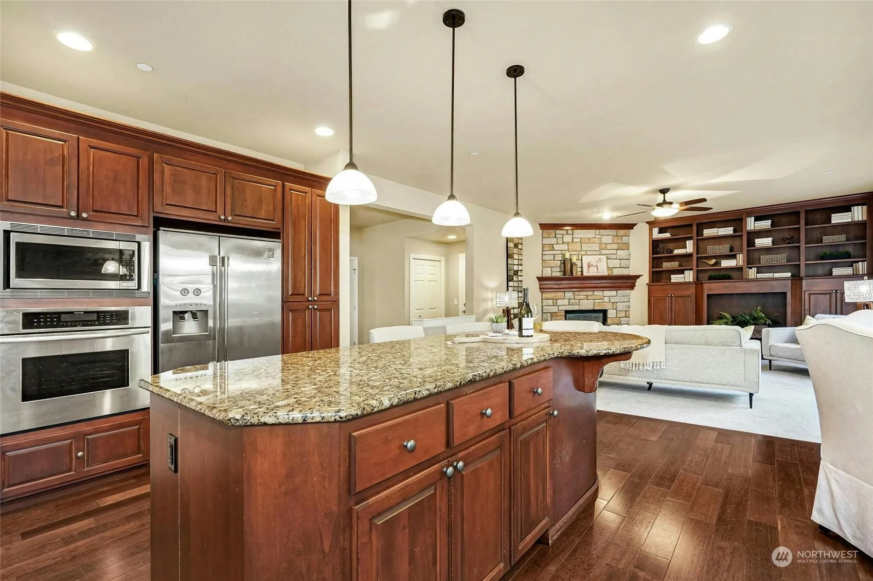 Motivated Seller! Welcome to this timeless gem! Nestled in tranquil River Crossing community, this 2006 John Buchan home offers harmonious blend of elegance and comfort. 10-minute stroll takes you to the vibrant Mill Creek Town Center, over 70 stores and restaurants. Step inside through grand entryway, opened great room boasts stoned fireplace & built-in shelf. French door den with Lg WIC, can be 5th BR. Crown molding graces formal dining room, Chef’s kitchen features slab granite countertops, top-of-the-line SS appliances, and walk-in pantry. Upstairs, discover spacious primary ensuite with large tiled shower, offering a private retreat. Bonus room and 3 BR. Tandem 3 car garage. Heat pump for A/C. New carpet and New interior paint.
