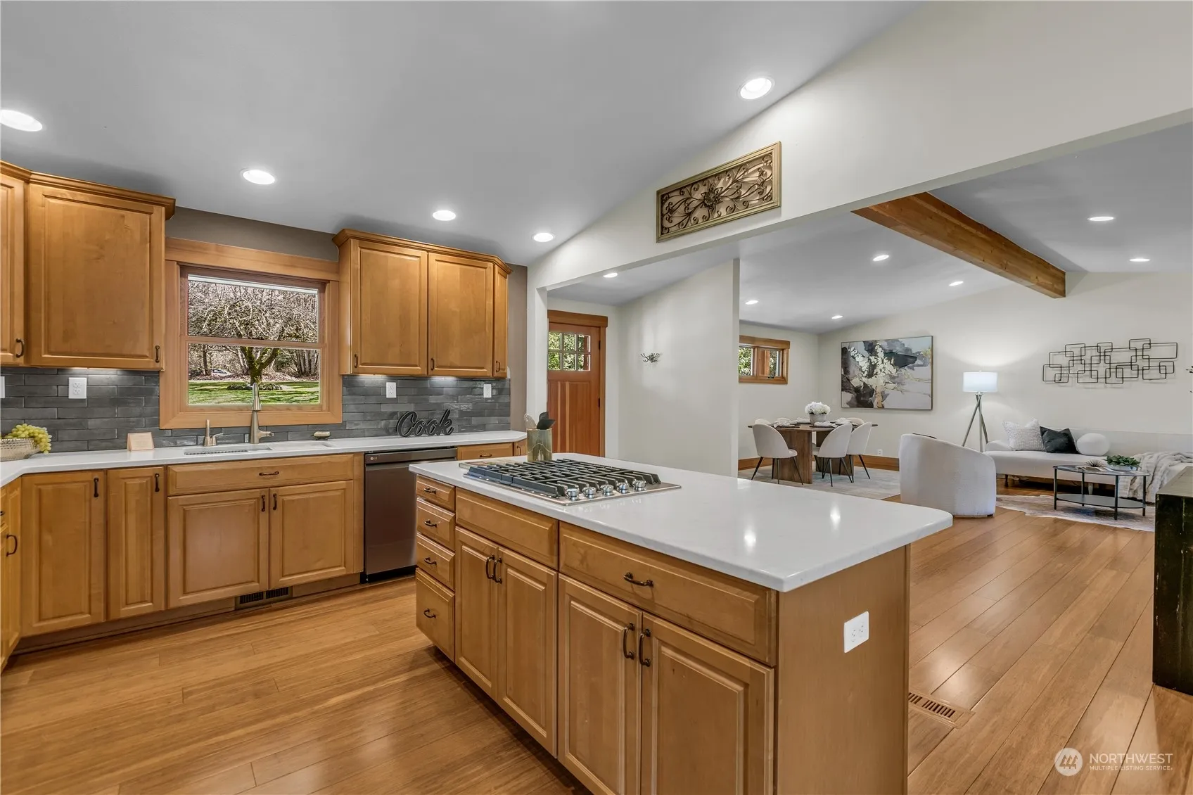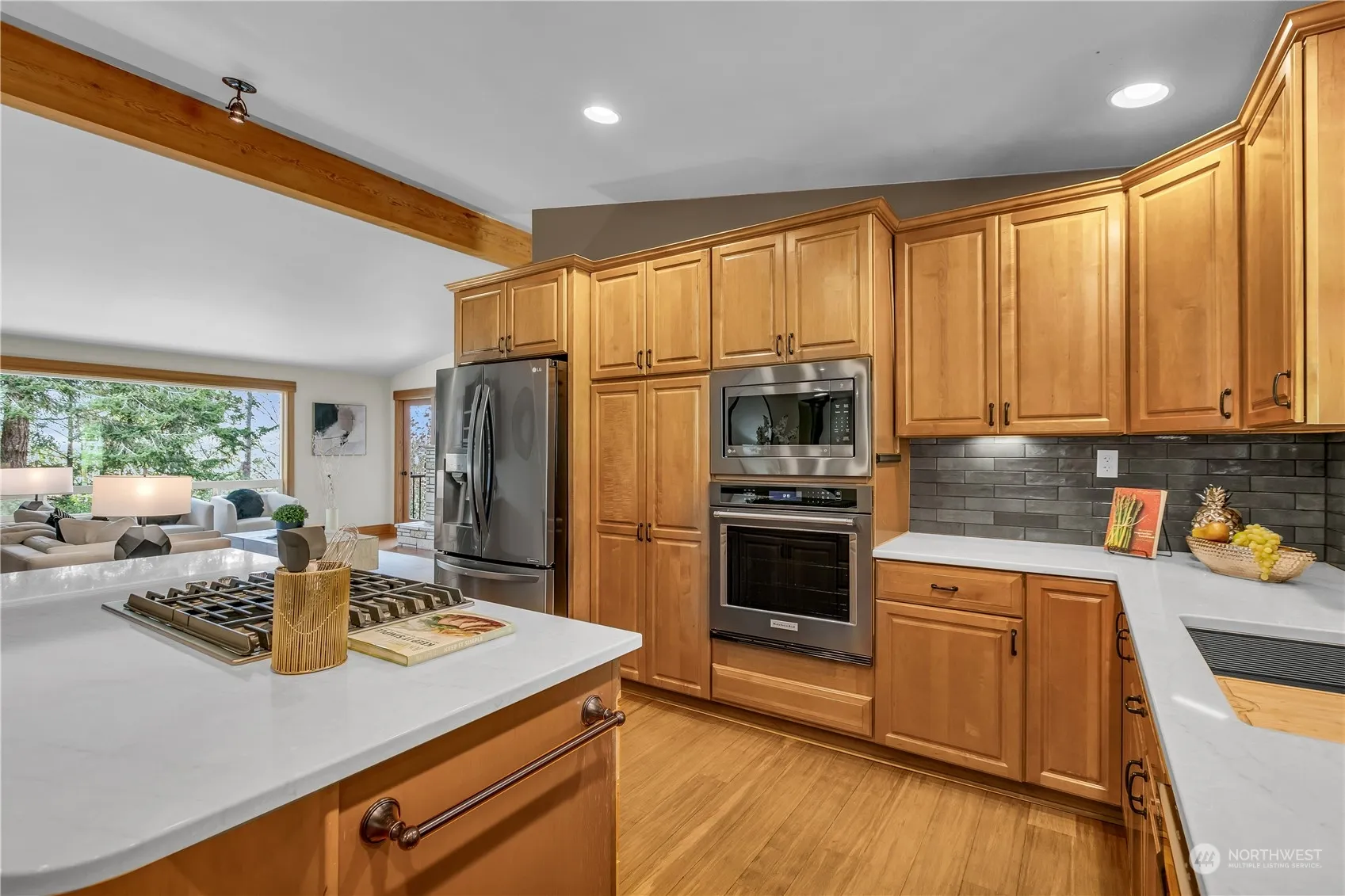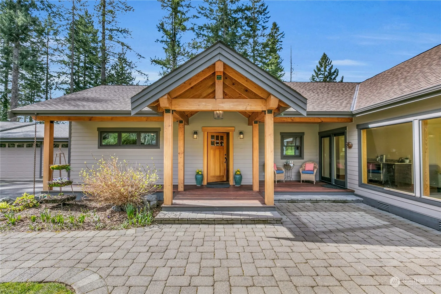 Escape to your private sanctuary on over 2 acres just 3 minutes from Hwys 18 and 169. Enjoy the quiet tranquility of mature gardens, raised beds, and a serene fountain. Relax on expansive decks and patios amidst easy-care landscaping. Elevate your sustainability game with a sleek greenhouse, fruit trees, and room for chickens or goats. This 4-bedroom retreat includes a versatile ADU or game room with a separate entrance. Recent upgrades include quartz counters and carpets to complement the bamboo flooring and extensive fir millwork. Multiple fireplaces and newer appliances add warmth and convenience. Details of lg shop and custom high-end features can be found in the attached feature sheet.