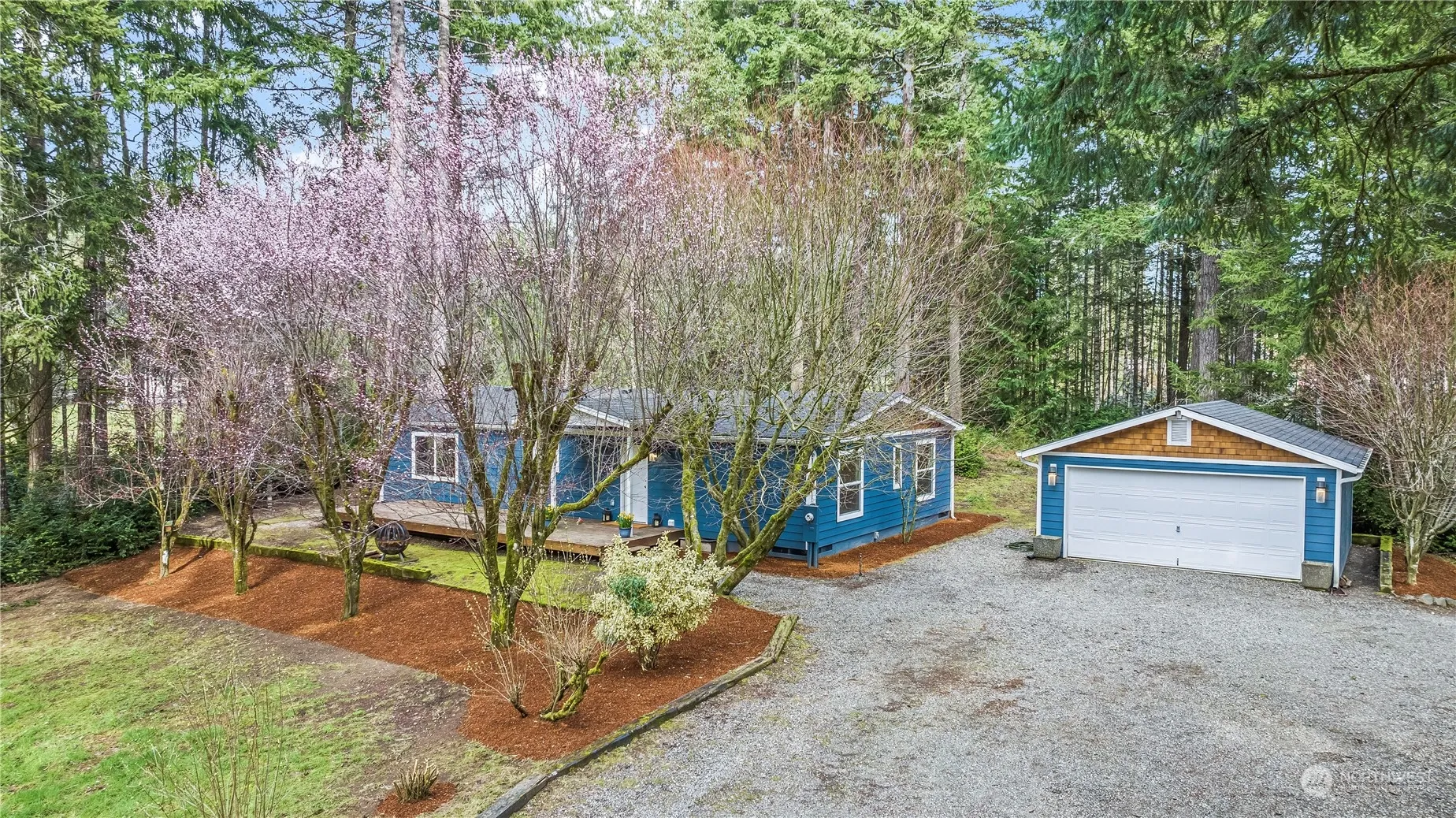 Lakebay is calling…This home is perfectly positioned on the sprawling 3+ acre lot, providing peace and tranquility while being a short drive to the amenities of Key Center and Gig Harbor beyond. The covered entry welcomes you into a house that immediately feels like home! Not a surface left untouched, new LVT floors throughout, freshly painted (both inside & out), new kitchen, primary bathroom, heat pump, furnace, windows…and it shows. The thougthful floorplan creates privacy with the primary suite on one side and the other two bedrooms and bath on the other. The detached two-car garage has room for all of your toys, a shed for the tools, and a pasture for your animals! This property is as inviting as it appears, come see for yourself!