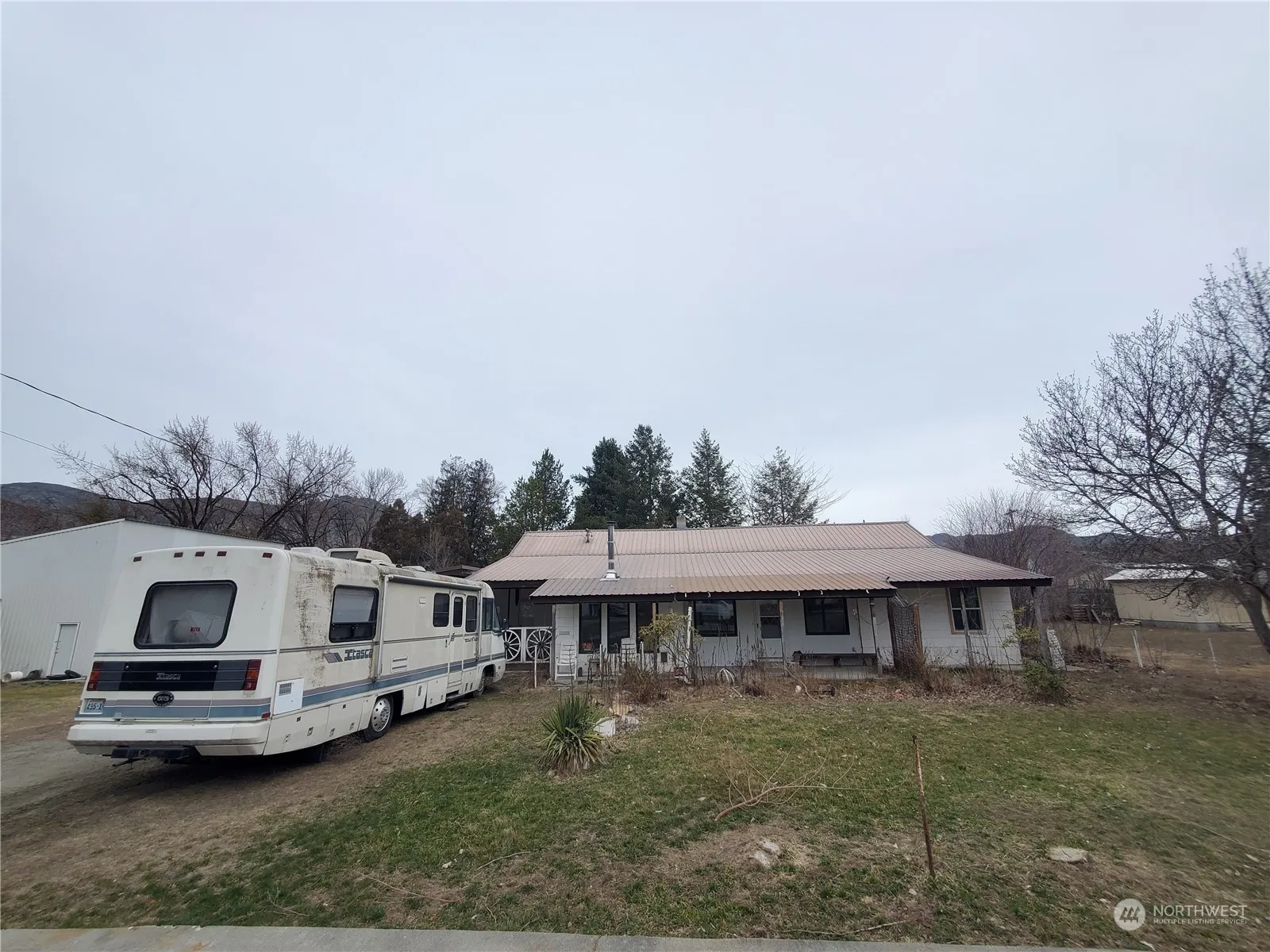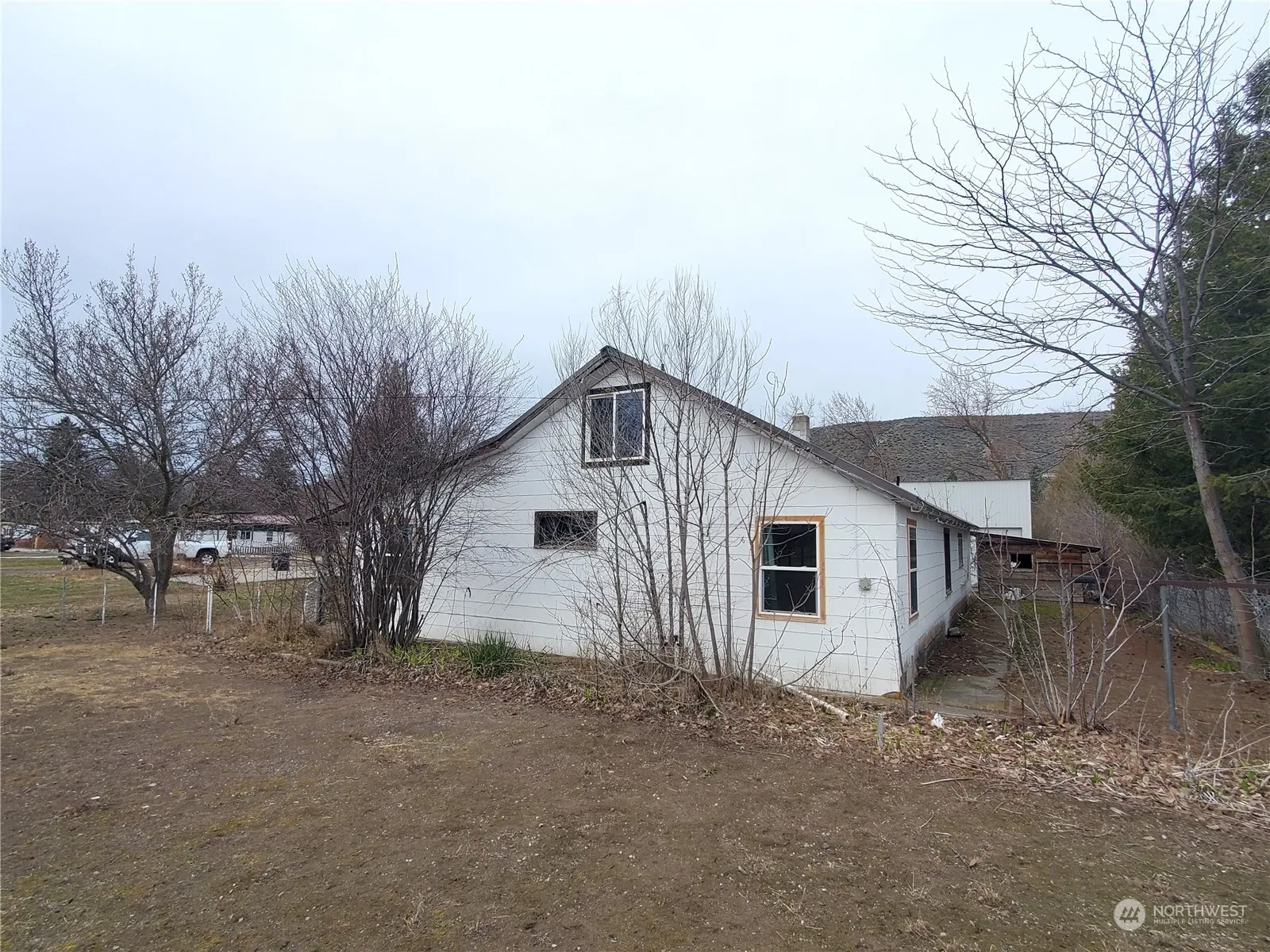 HUGE 1600 +/- detached shop highlights this 2 bed/1.75 bath Tonasket property with Okanogan River access. Over 1/2 acre partially fenced lot located on a dead-end street. Home needs some TLC, and offers living room, kitchen w/some appliances, family room with wood stove, utility room with W/D, attic space ready for finishing to additional bedroom, plus unfinished basement for storage. 2-bay attached carport and covered front patio. Shop has 2 apprx 12 ft roll-up doors, 220 pwr, wood stove, back lean-to, upper loft area. $199,900 H-3222/MLS2208554