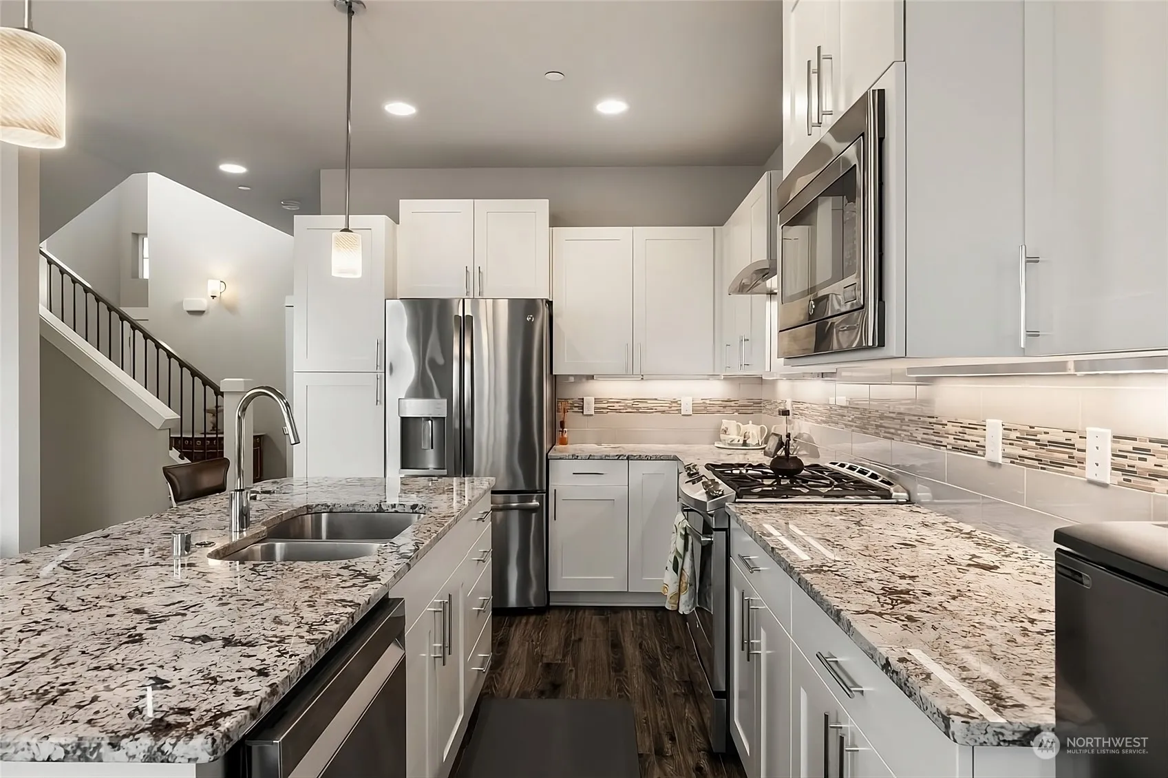 Must see this stunning luxury townhome in the gated community at Copper Ridge. With western exposure offering beautiful sunset views of the valley, city & Olympic mountains. This home features an open floor plan with abundant natural light throughout the main floor. The kitchen boasts soft-close cabinet doors, ample storage, SS appliances, granite countertops. The spacious master suite includes a sitting room, a five piece inspired bath w/walk in closet. The lower level offers a great entertainment room, a BR, a full bath, extra storage. Step outside to the awning patio and fully fenced, low-maintenance backyard. Additionally, enjoy the sunshade deck off the dining room. Central AC & tankless heater enhance comfort. Easy access to SR 167.