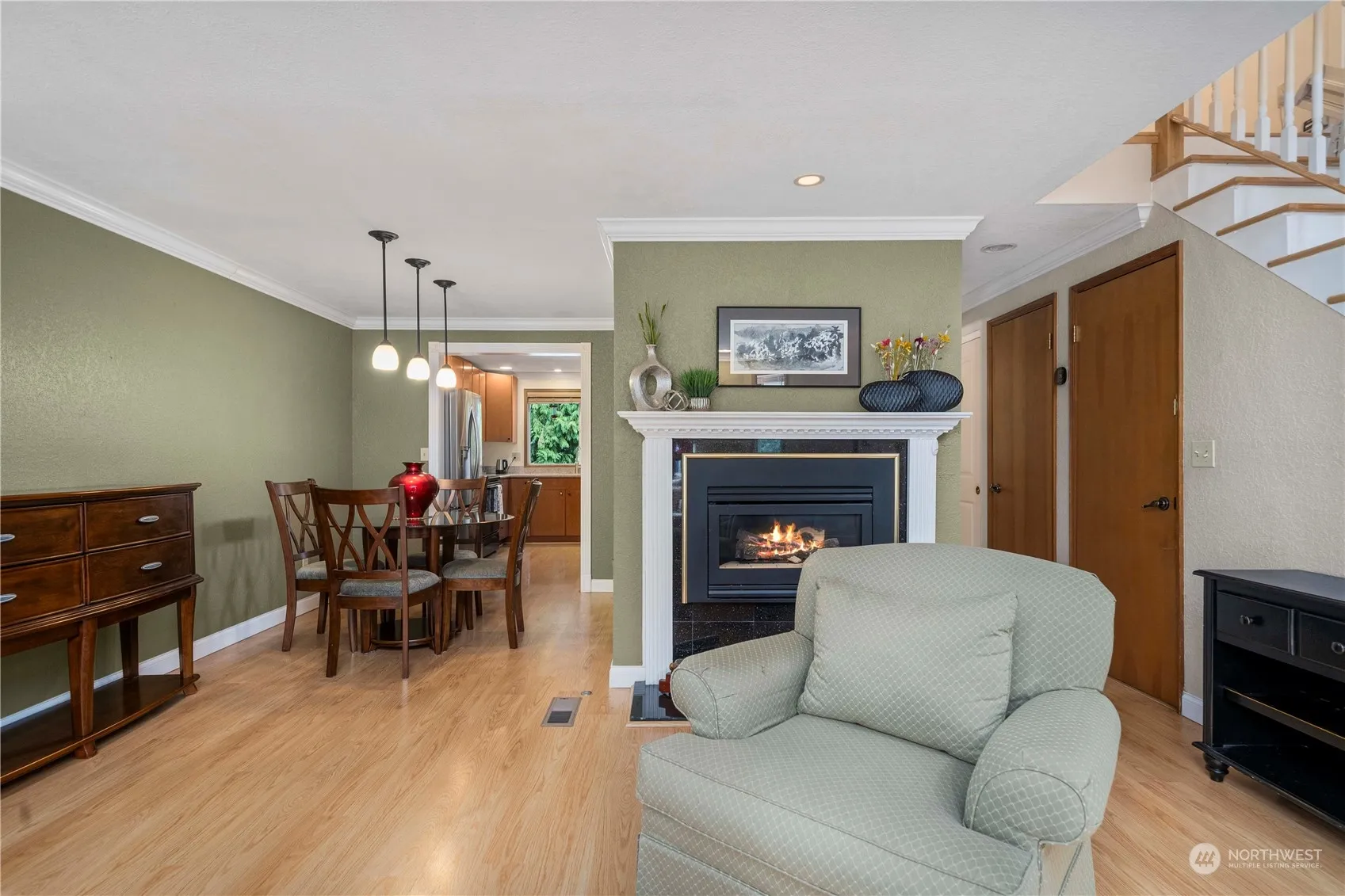 This townhome-style condo is nestled amongst a park-like setting w/ an abundance of lush greenery. Enjoy the covered front porch and back deck in this quiet gated neighborhood. Great kitchen is open to addt’l living space, expansive counter tops & storage. Perfect for entertaining w/ lots of windows w/ natural lighting. Living rm boosts bay window w/ more natural light open to the dining room & access to the kitchen. Upstairs boasts 2 spacious bedrooms w/ walk-in closets & a 3/4 bath. Primary has an addt’l office nook. A tandem 1-car garage w/ shop space & plenty of storage is on the lower level. All appliances included. Newer gas water heater, furnace & washer in dryer. located near public transit, amenities & entertainment. Schedule now.