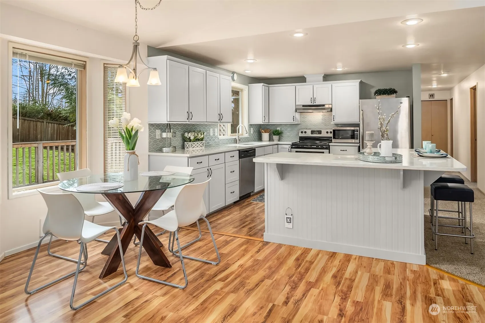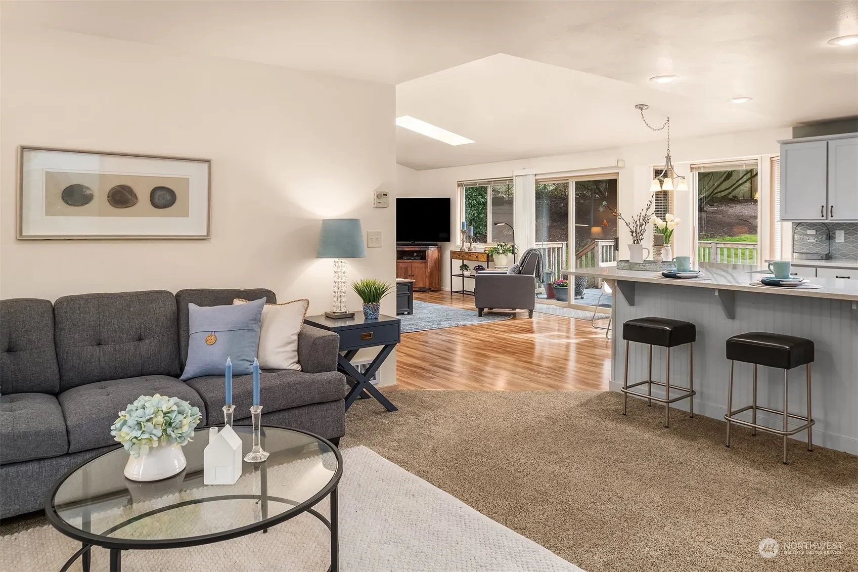 A must see! Charming Duvall Rambler with desirable open-concept floor plan, located at the end of a quiet cul-de-sac. The living room, kitchen and family room are Great Room style living, ideal for entertaining. The updated kitchen features ample quartz counter tops, center island & stainless steel appliances. The family room has vaulted ceilings and a fireplace. This 1,550 SF home lives large and is “move-in ready”, offering 3 bedrooms & 1.75 updated baths w/heated floor in Primary. Spacious private yard with large Trex deck. Brand new roof! Close-in Duvall location makes for a short commute to Redmond and Eastside employers and easy access to miles of trails, parks and all the fun shops and restaurants Duvall has to offer. Pre-Inspected.