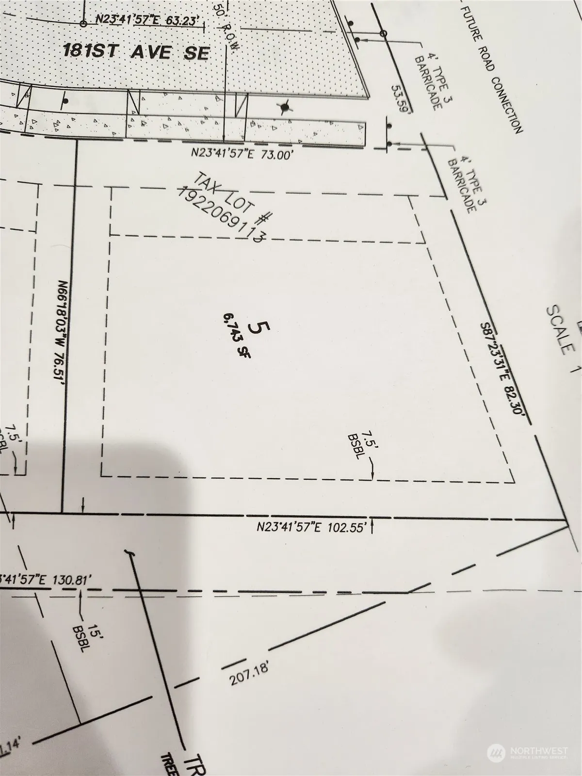 Lot 5 backs up to 250 feet of open space. You can watch the horses when they are out in there pasture. The lot is 73 feet wide at the street and 102.55 feet wide at rear property line. Fenced on North property line. Lot is part of new 8 lot subdivision. Other lots are available for sale. HOA may not be needed. CC&R language is proposed and are not recorded, will be recorded prior to closing with Buyer review. A 1/8 responsibility for Puget Sound Energy Street Light electricity bill averaging about $50.00 per month.