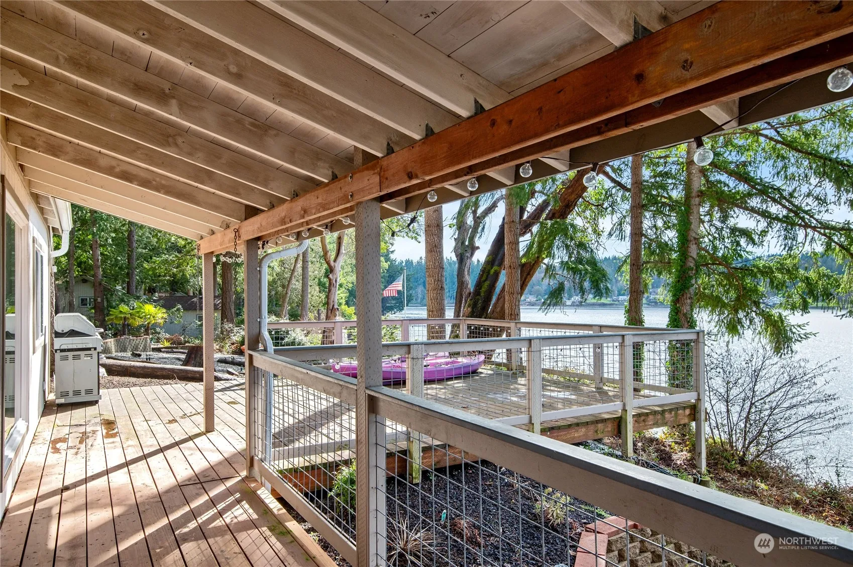 Indulge in coastal living at its finest! This charming waterfront home offers coveted low bank access and tideland rights, perfect for boating, fishing, and beach-combing. Inside, enjoy an airy open floor plan flooded with natural light, ideal for entertaining or unwinding in true PNW style. Step onto the expansive deck for panoramic water views. With ample space for guests and summer fun including swimming and campfires, this community boasts private beach access, a boat launch, club, pool, and covered picnic area. Plus, a detached office ensures work-from-home ease.