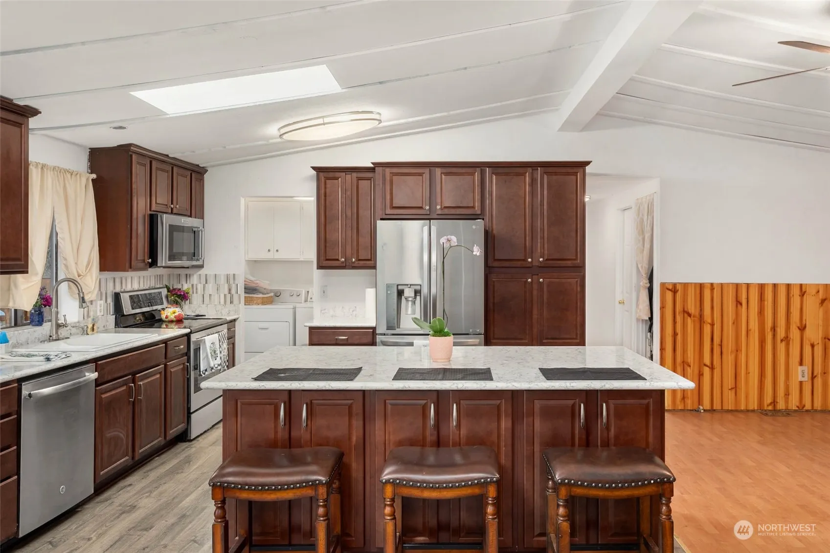 Welcome home to tranquility on a 1.14 acre property in Buckley Meadows. This home boasts vaulted ceilings, open concept living and natural light. When you open the door, you are greeted by a large great room leading into an updated kitchen with a large island, quartz countertops and room to entertain. New carpet in the guest bedrooms, with tons of space in the primary bedroom and en suite bath. This amazing property has room for all your toys, with a chicken coop and a barn. Some of the property recently graded and ready for your garden, yard landscaping. Start a hobby farm or just enjoy the privacy!