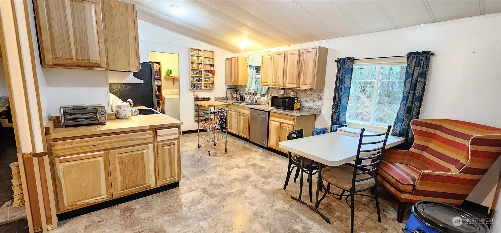 This cozy 3 bedroom, 2 bath home is nestled on 2.5 acres of wooded land in the desirable Matlock area, near the school. Spacious kitchen with brand new cabinets, counter tops, flooring, dishwasher and fridge. The living room is open and inviting, with built in storage. New well pump, new hot water heater, water filtration system. The fully fenced lot, tall trees, and electric gated entry provide a sense of tranquility and privacy. A shop and two additional outbuildings, all with electricity, provide space for creating, storage, or even guest sleeping quarters. The outbuilding closest to the home is also heated. Other features include a fenced garden space, playhouse, and RV dump.