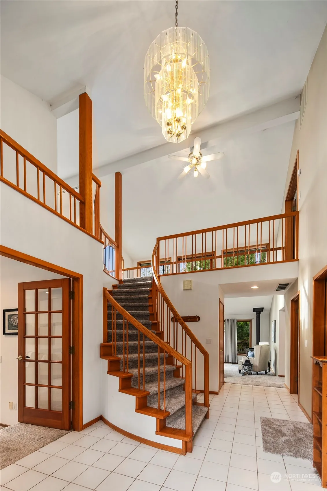 Stunning Lake Stevens home with DOCK RIGHTS! Enjoy the views from this custom 3 BR, 2 BA home on 3/4 Acre Lot. Gorgeous curved staircase leads you to the spacious Primary Suite featuring sitting room, walk in closet & large private bath. Skybridge from Primary BR to Office overlooking the Lake. Formal living room with french doors & wood wrapped windows. Living room with soaring vaulted ceilings, cozy woodstove & picture windows. The kitchen is appointed with granite counters, SS app, eating nook & MORE VIEWS! 3 Car Garage with oversize 3rd bay w/shop area. Newer Roof, brand new furnace & fully redone crawlspace. Outdoor seating area is perfect to BBQ, Relax, enjoy the peace & tranquilty. Pre-Inspection available upon request.