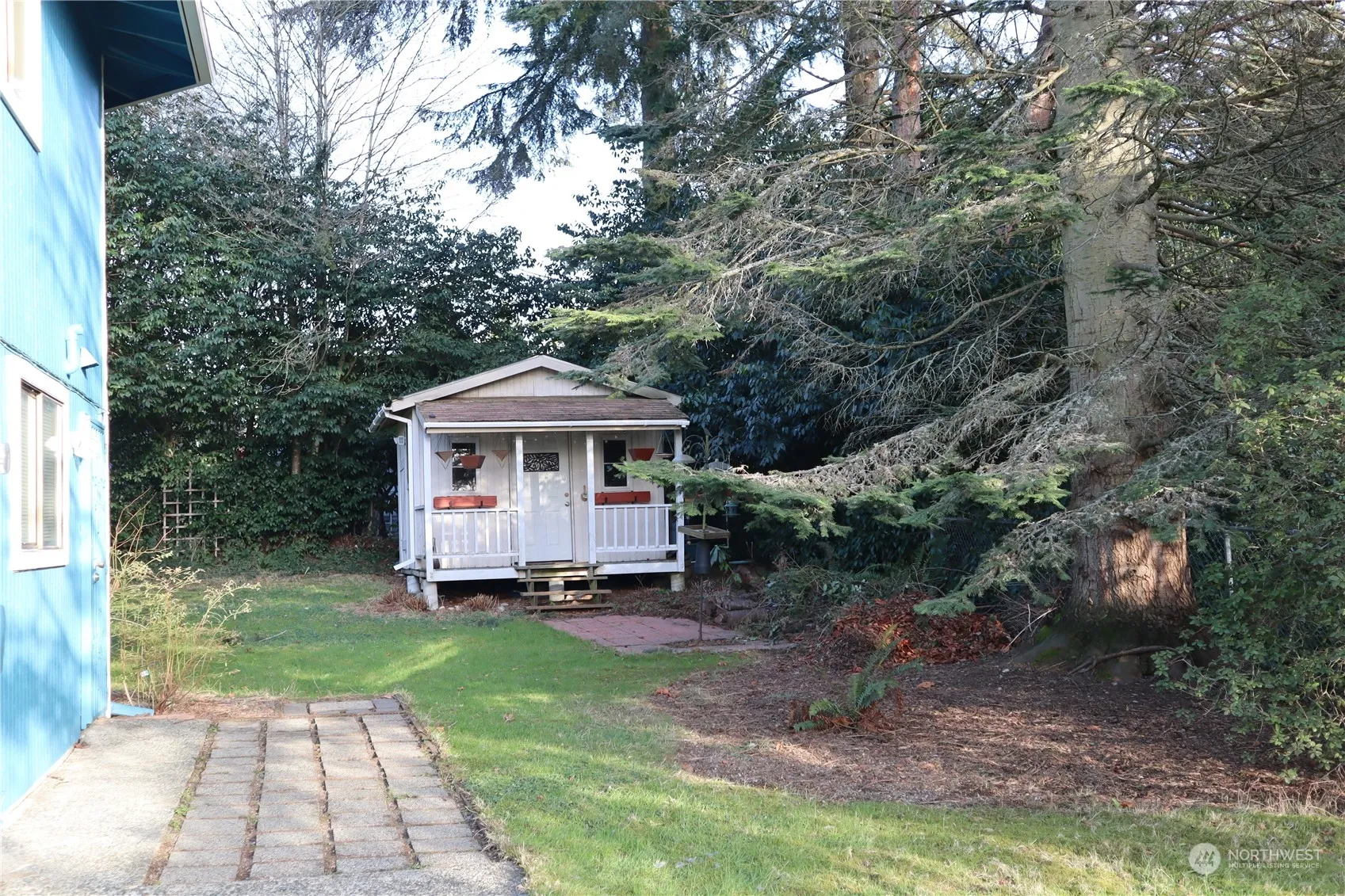 4 BR 3 BA home 2300sq.ft. Large Secluded lot. If you are Looking for a unique home this might be the one. Come check out this two story Octagonal shaped home with its very own cupola. Large open living spaces with brilliant light. Two living rooms. Gas fireplace, French doors off living room that leads to a screened in deck. Bath off Primary Bedroom. Large utility room with sink and storage. Beautiful yard full of trees and hidden gems. Plenty of Garden space. Outbuilding that could be used as garden shed ,shop or artists studio. Attached garage with additional storage room. Ample parking for 4 vehicles. Many updates, ready for your personal touches.