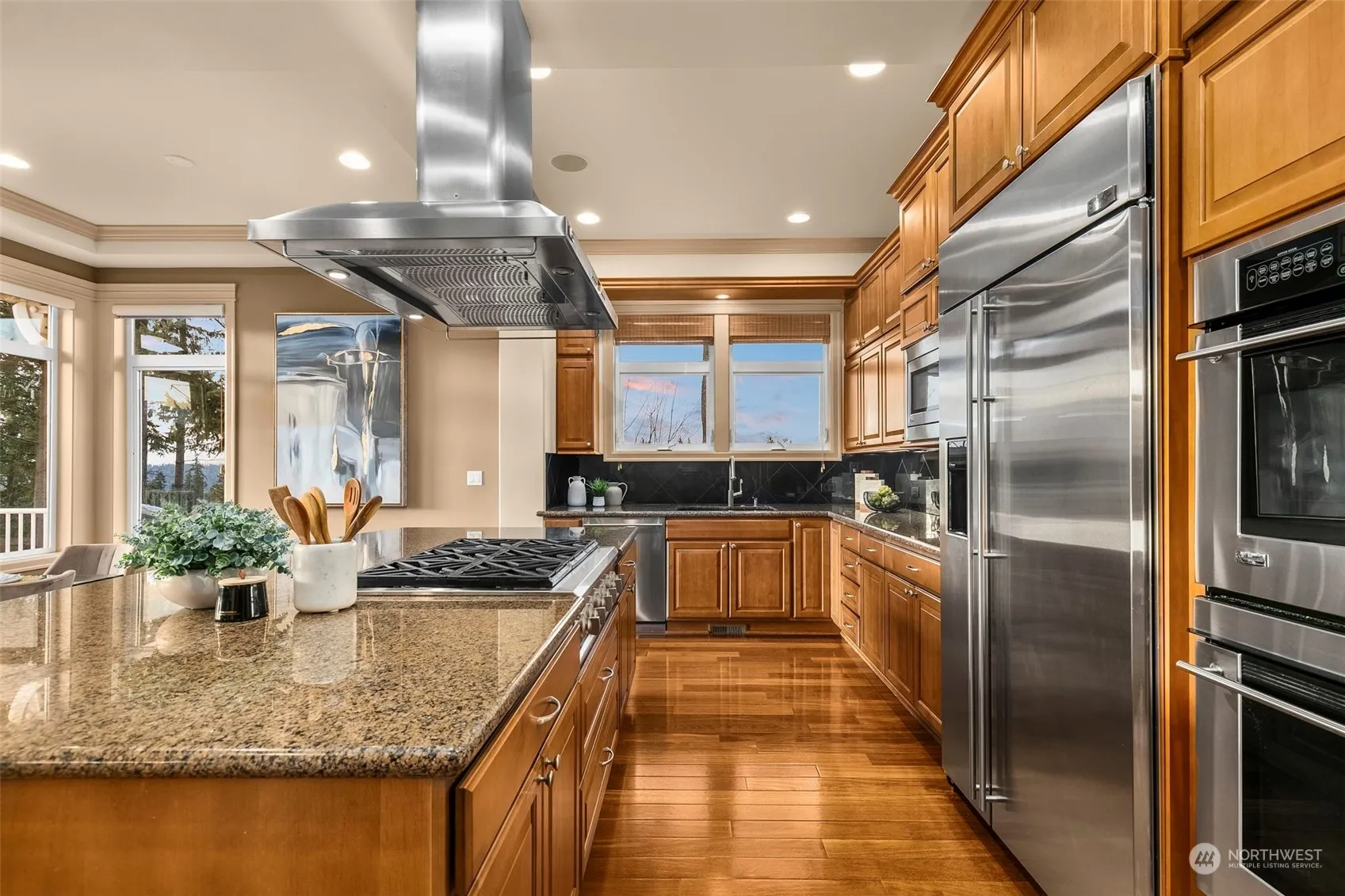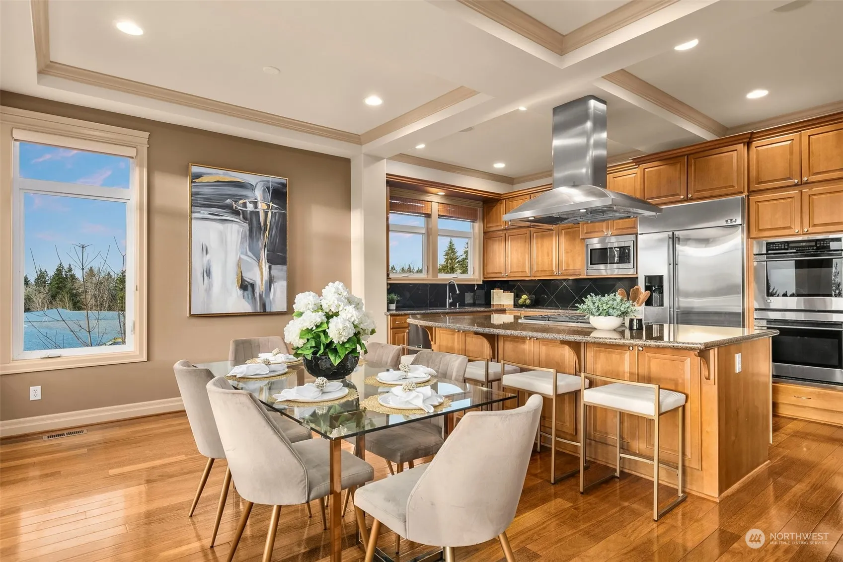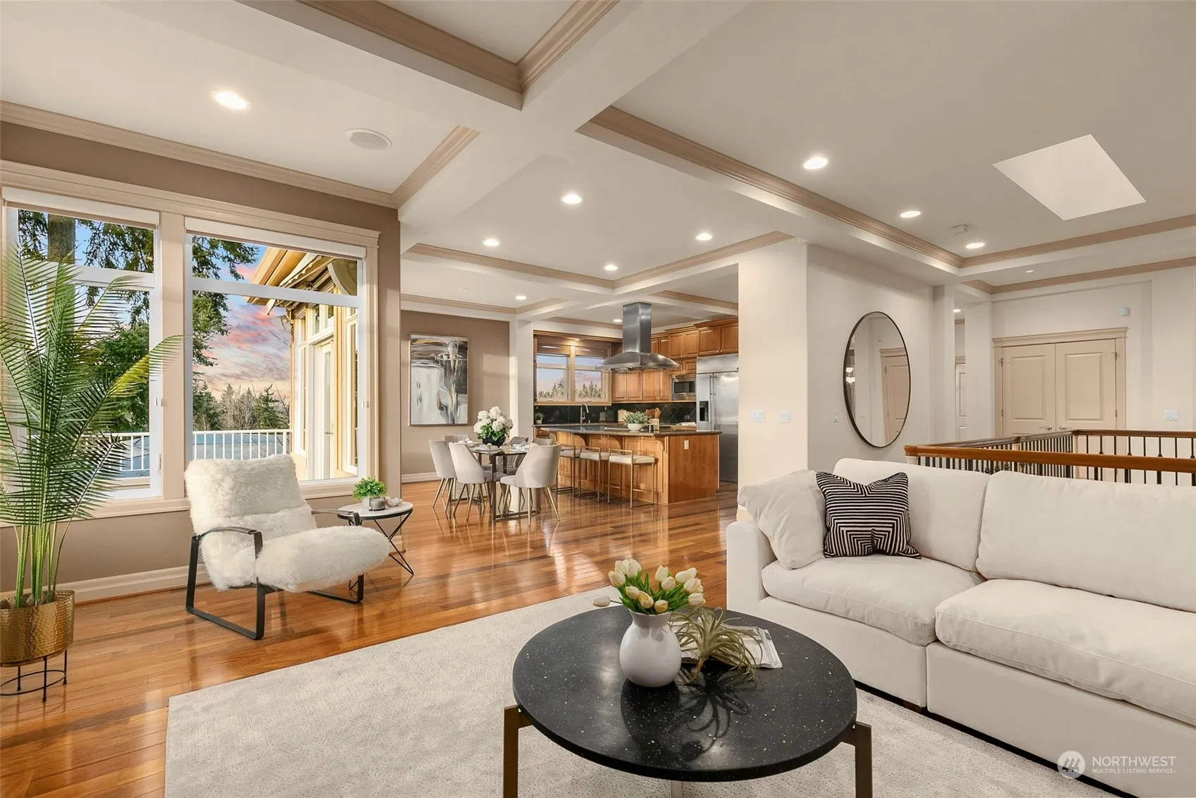 Welcome to your luxurious entertainer’s dream home situated on a cul-de-sac in the private Lake Ridge neighborhood! Enjoy the breathtaking lake, mountain , & sunset views from either of your two generous low-maintenance decks. Your home’s soaring ceilings & sophisticated design exude presence & warmth. Prepare culinary delights in your stunning chef’s kitchen. Your main level primary with ensuite provides single-level living. The daylight lower level offers two junior suits, media room, wet bar, rec room, a separate attached garage, & deck perfect for guests, multi- generational living, and entertaining. Just blocks to great schools & mins to Lk Washington, Cougar Mtn Trails, airport & both DT Seattle & Bellevue.