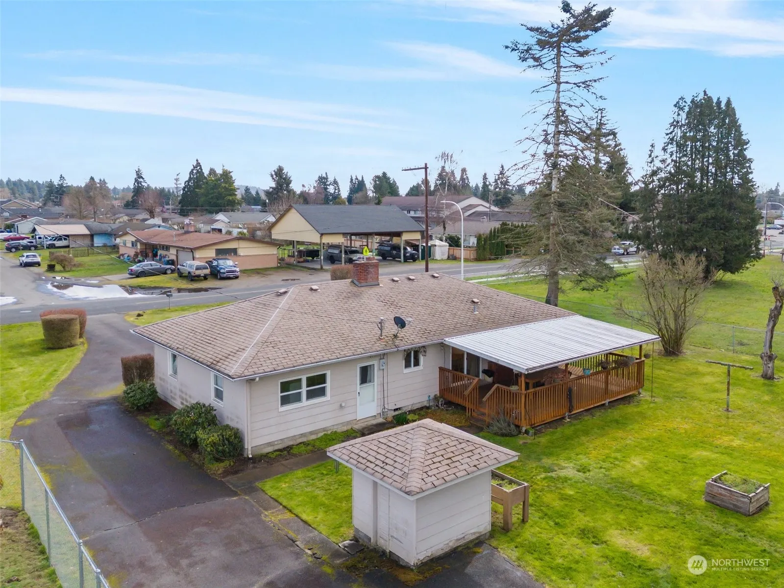 Step into this charming 1945 home on nearly half an acre, making its debut on the market for the very first time! Adorned with coved ceilings and arched doorways, giving a sense of elegance and character throughout the home. A gas fireplace serves as the heart of the home, providing warmth & ambiance on chilly evenings. Step outside on the expansive covered deck, ideal for entertaining or simply enjoying the mature landscaping in your private backyard. The attached one-car garage ensures convenience, while a spacious carport provides ample parking for vehicles, toys or RV. Additionally, an enclosed shop provides a versatile space for hobbies or storage needs. With its vintage charm, you can create cherished memories for years to come.