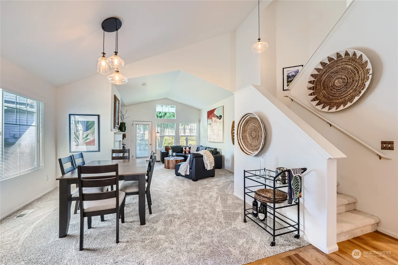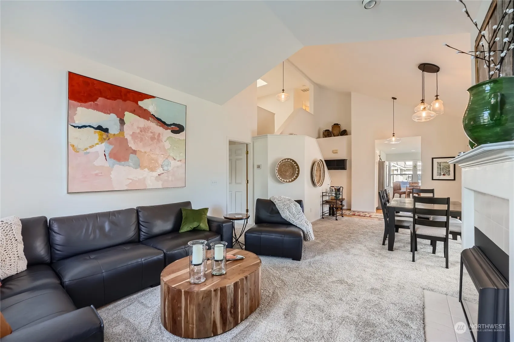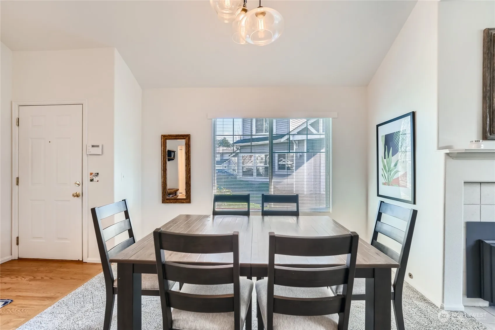 Level entry (no steps) home has a main floor primary suite with a five-piece bath and walk-in closet. Back yard patio looks out to the Green River Trail, no homes behind it and miles of walking, bicycling etc. just beyond your back door. The living/dining rooms have two story vaulted ceilings with a loft den/office above. Two bedrooms and a full bath upstairs. Convenient guest bath and laundry on the main floor. Gas fireplace and efficient gas heat with central A/C. Nice quality updated baths and showers. Secure parking in the two-car attached garage. Situated in Marina Pointe, the premier gated community at The Lakes featuring community parks and trails. Convenient to Sounder commuter train, light rail, interstate 5 and SeaTac Airport.